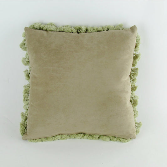 18 Inch Decorative Throw Pillow Cover Fringes Braids Beige Fabric