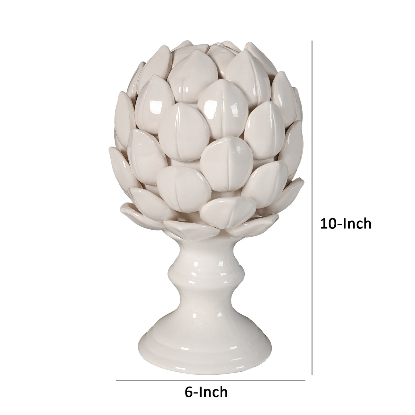 10 Inch Artichoke Accent Decor Standing Turned Pedestal White Ceramic