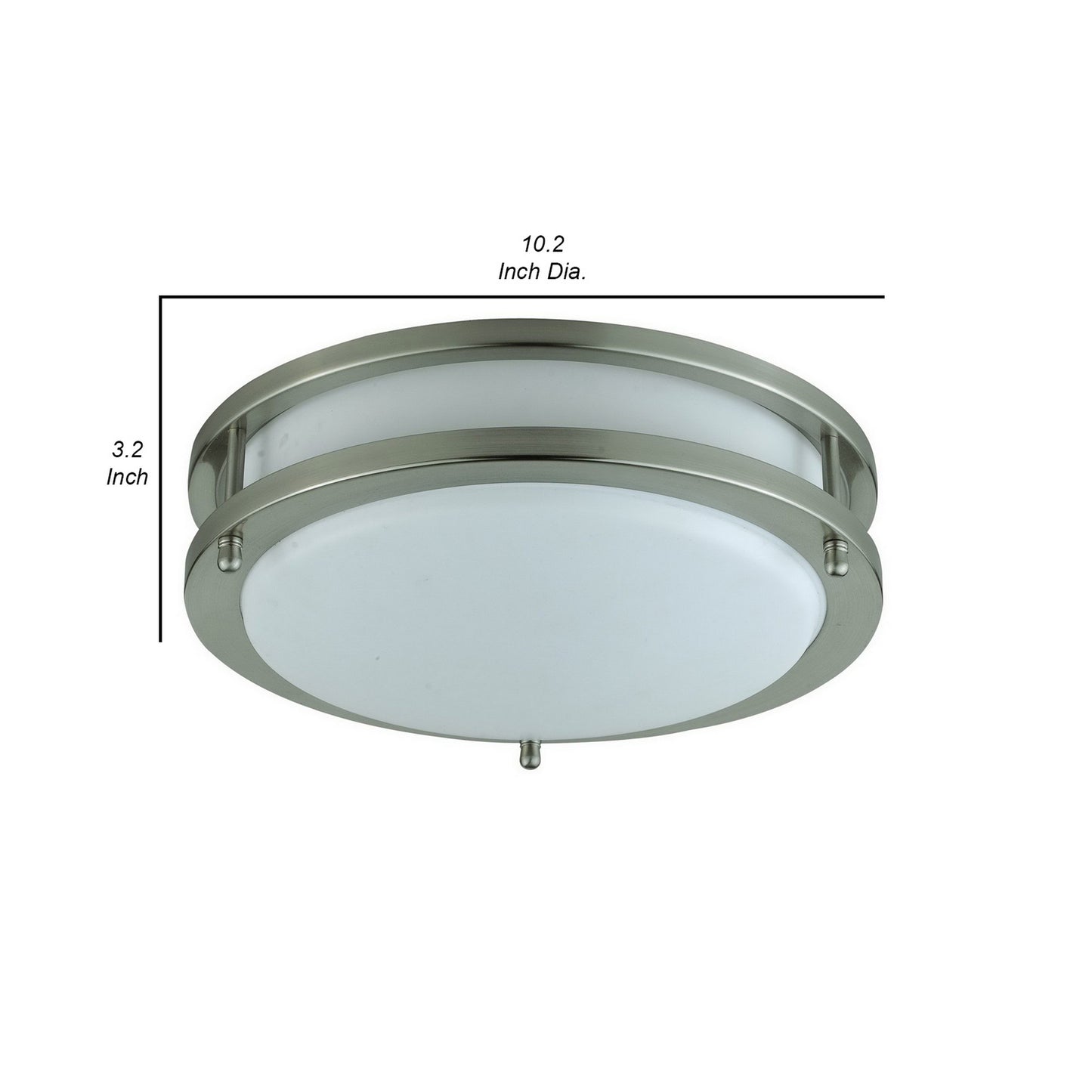 This beautiful flush mounted ceiling lamp is a masterfully designed piece, perfect for brightening up any room in your home and giving it a stylish edge as well. Made of sturdy brushed steel, the frosted acrylic plate diffuses the light softly while the stylish dual steel trim gives it a deeply unique aesthetic. Check out our Jesse collection for matching pieces.