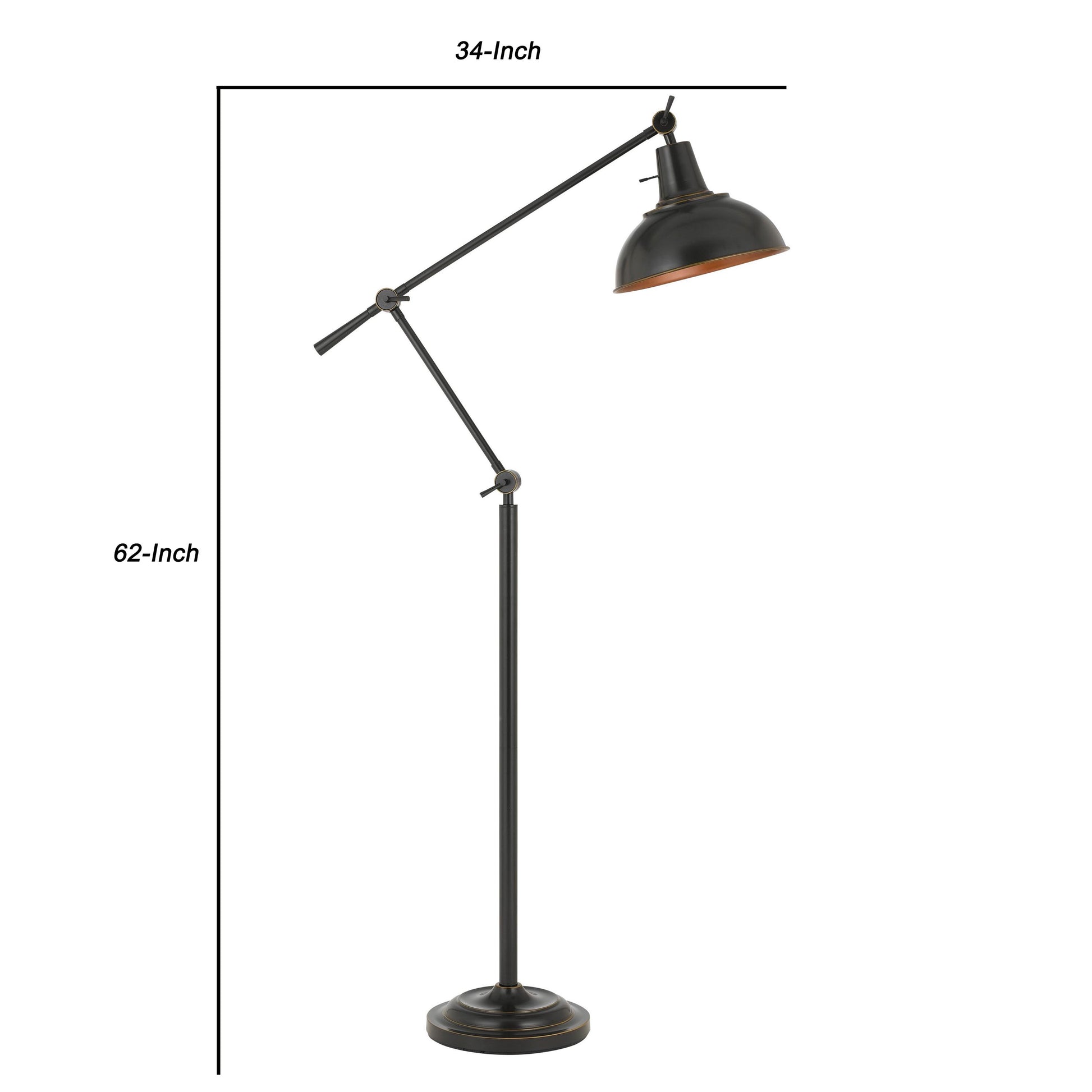 Enlighten your home with the rays of hope and happiness by the inclusion of this sophisticated floor lamp. It features a tubular metal body with adjustable height and head, incorporating a dome shade and an on off switch for seamless control. It is supported by a circular base, providing stability and durability.