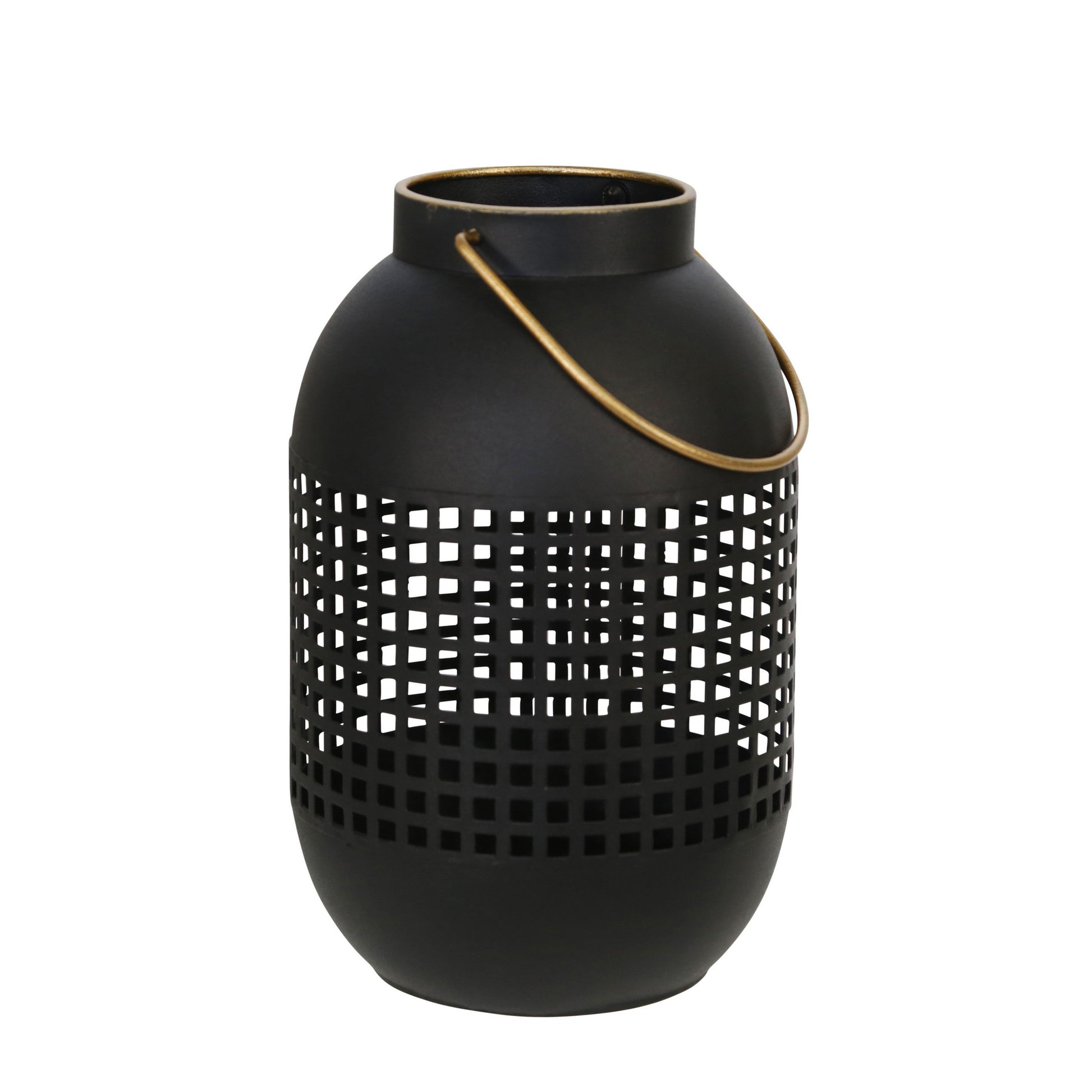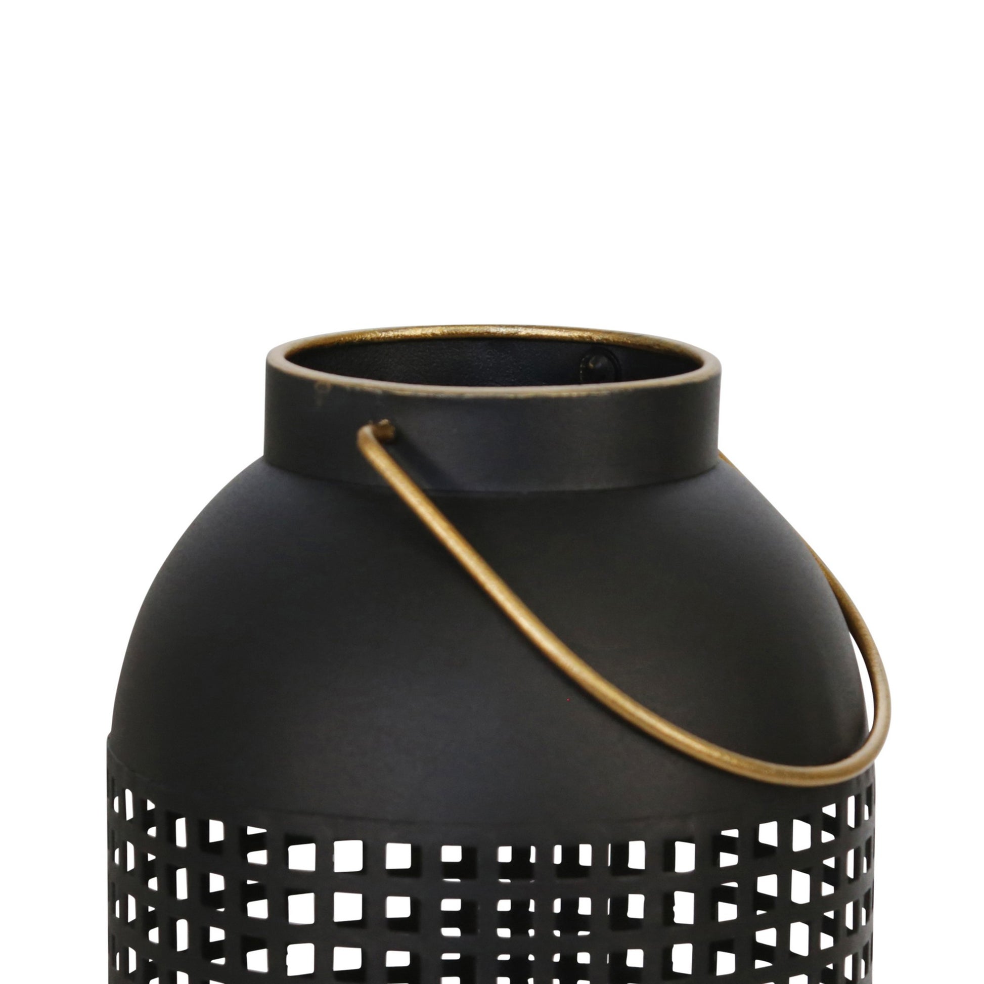 11 Inches Metal Lantern Modern Cage Design Handle Black And Gold