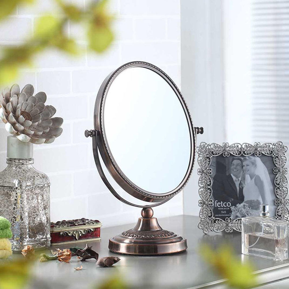 Magnification 8.25"H x 6"W Table Bathroom Mirror reflect beautiful views and you can teach yourselves to primp, preen and twirl in front of the mirror. Our mirror image knows deepest secrets as our one of the best friend. Will make sure you leave the house looking your best and reflects something of your approval. Experience this glamorous 2 Sided Mirror in the comfort of your home. A luxurious architectural innovation, this make-up mirror is perfect for you. Fashioned with modern and contemporary accents, the mirror will enhance your daily make-up or shaving routine.