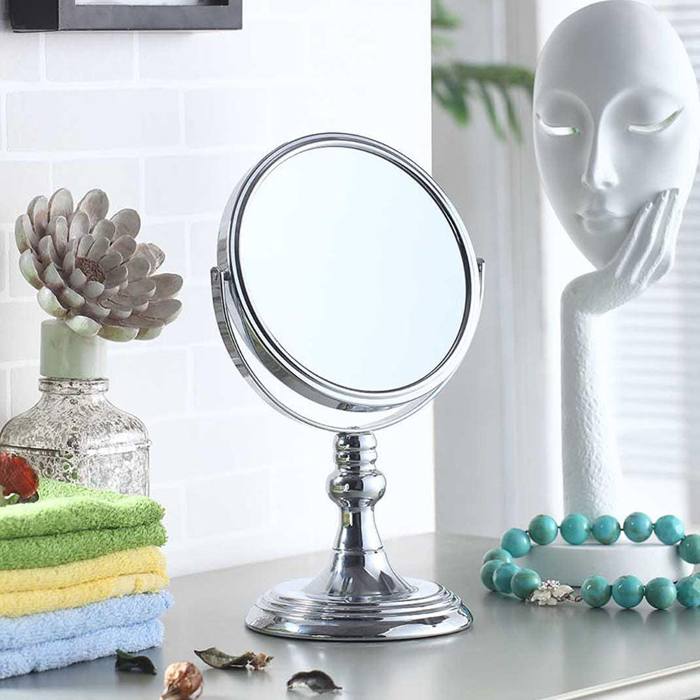 Magnification 6.5 Dia Table Bathroom Mirror reflect beautiful views and you can teach yourselves to primp, preen and twirl in front of the mirror. Our mirror image knows deepest secrets as our one of the best friend. Will make sure you leave the house looking your best and reflects something of your approval. Experience this glamorous 2 Sided Mirror in the comfort of your home. A luxurious architectural innovation, this make-up mirror is perfect for you. Fashioned with modern and contemporary accents, the mirror will enhance your daily make-up or shaving routine.