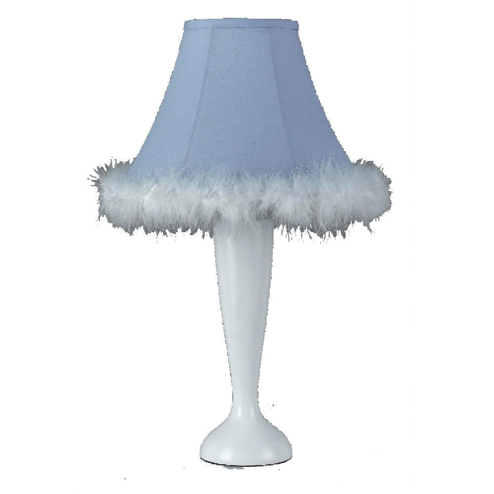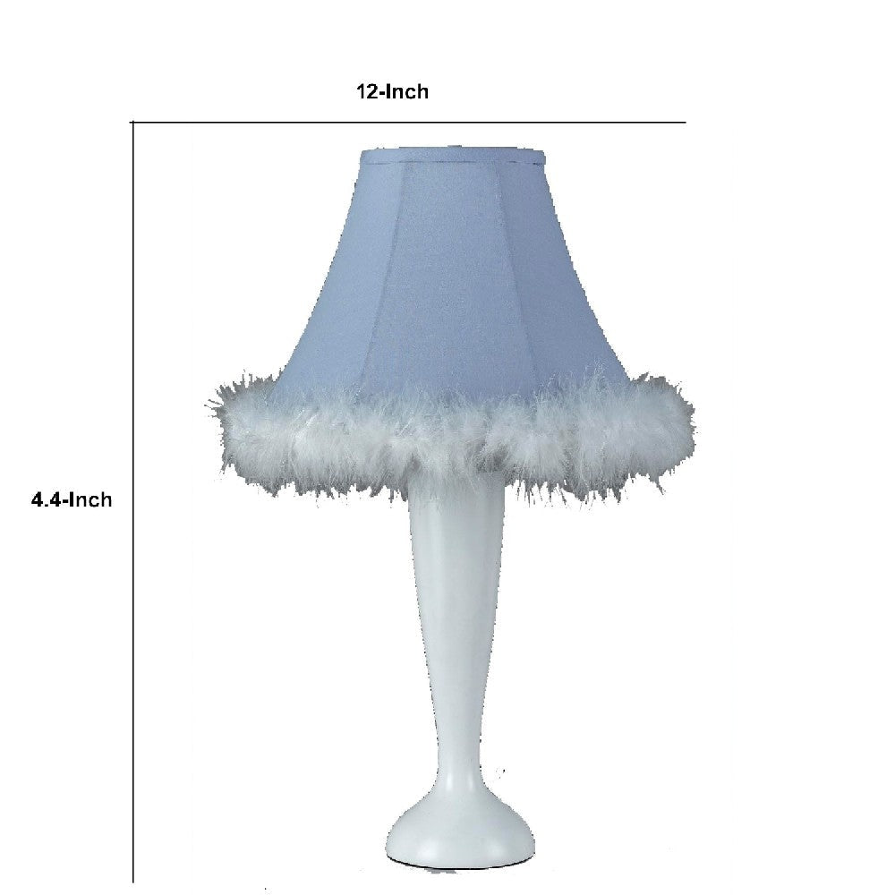12 Inch Resin Table Lamp with Empire Shade Fur Trim Blue