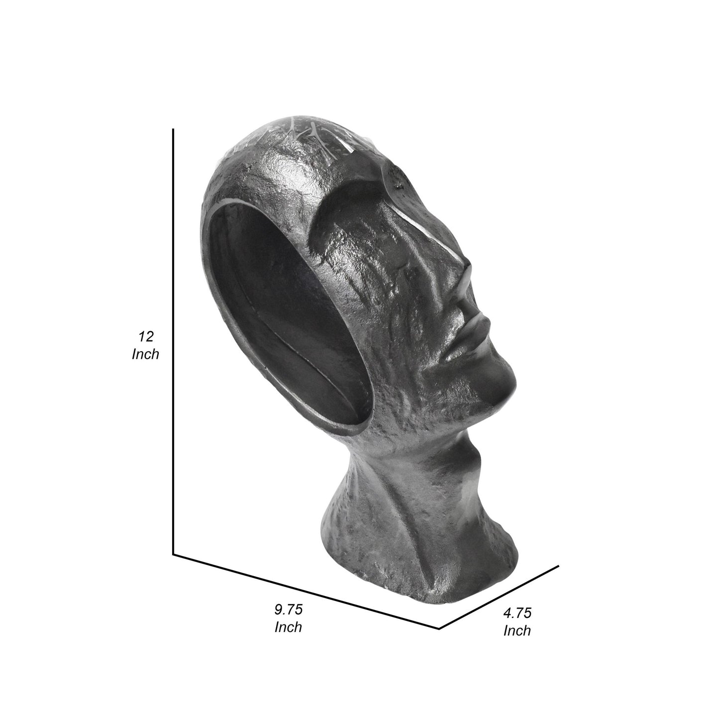 12 Inch Tabletop Accent Decor Metal Island Statue Face Replication Gray