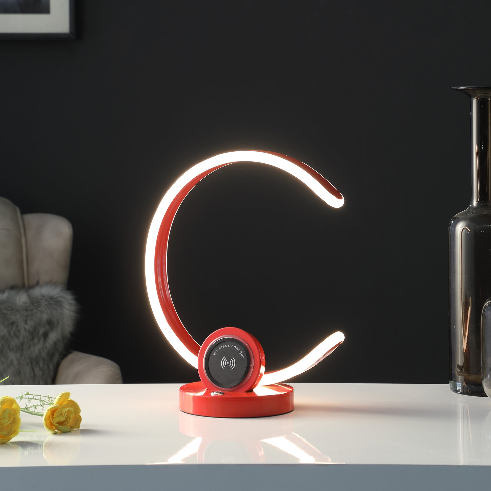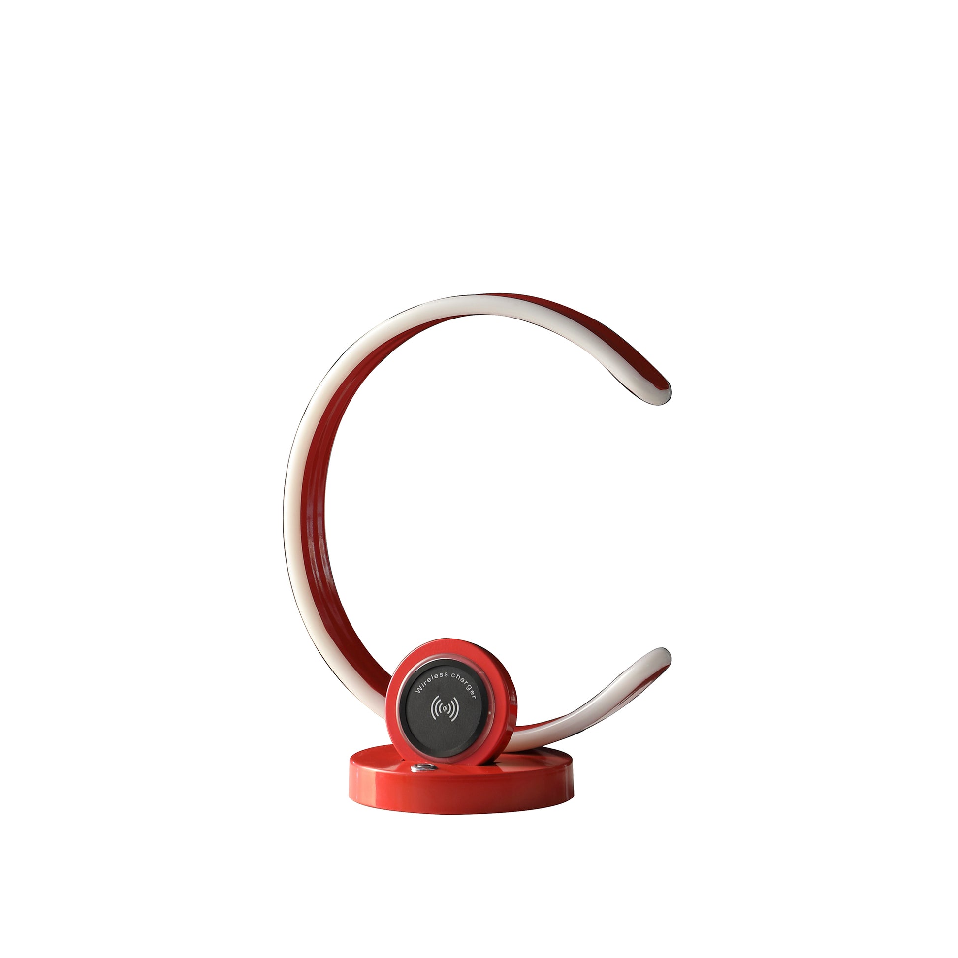 13.25" In Modern C Shape Led W/ Usb/wireless Charger Port And Touch Dimmer Bright Red Table Lamp