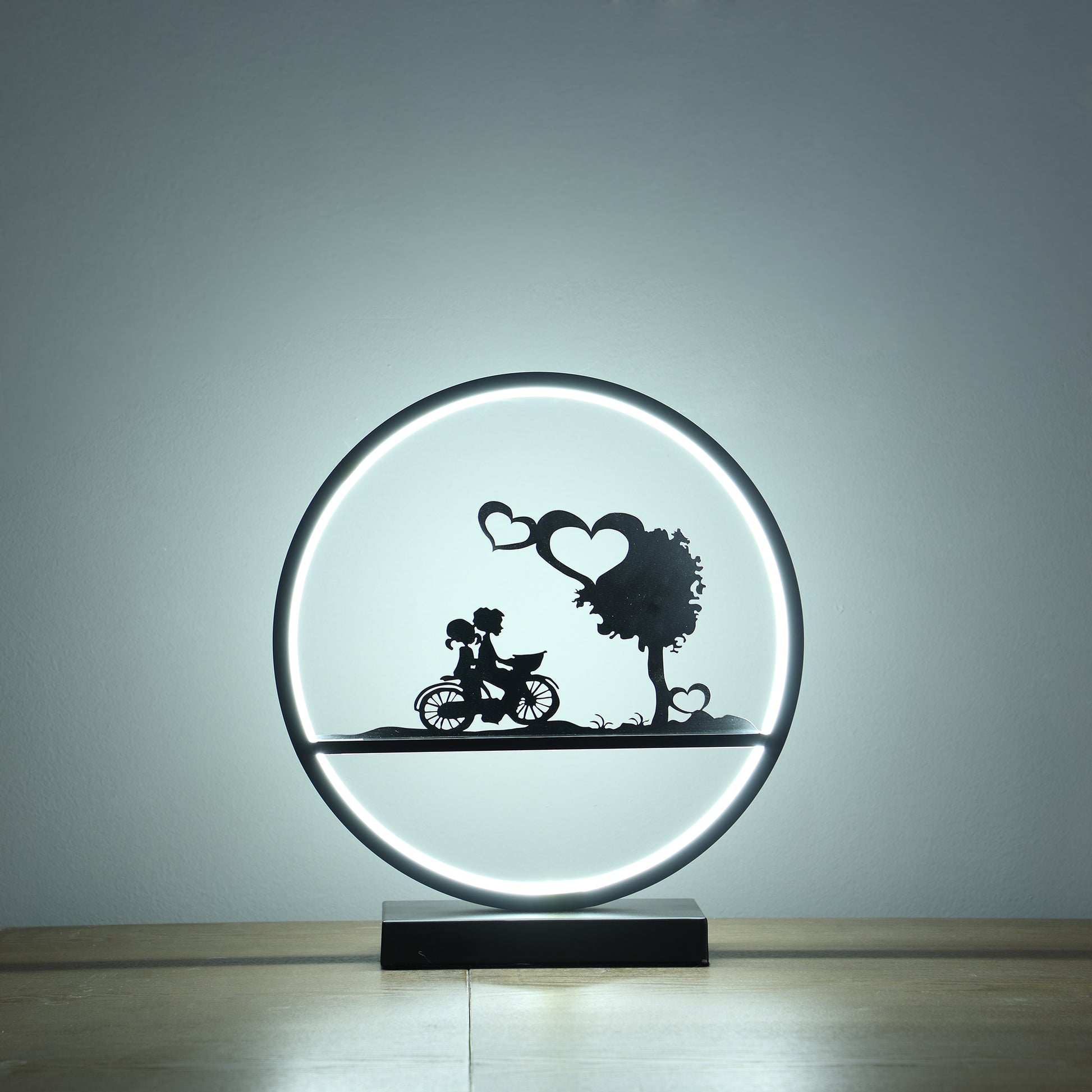 13" In Girl And Boy On Bicycle Led Accent Table Lamp