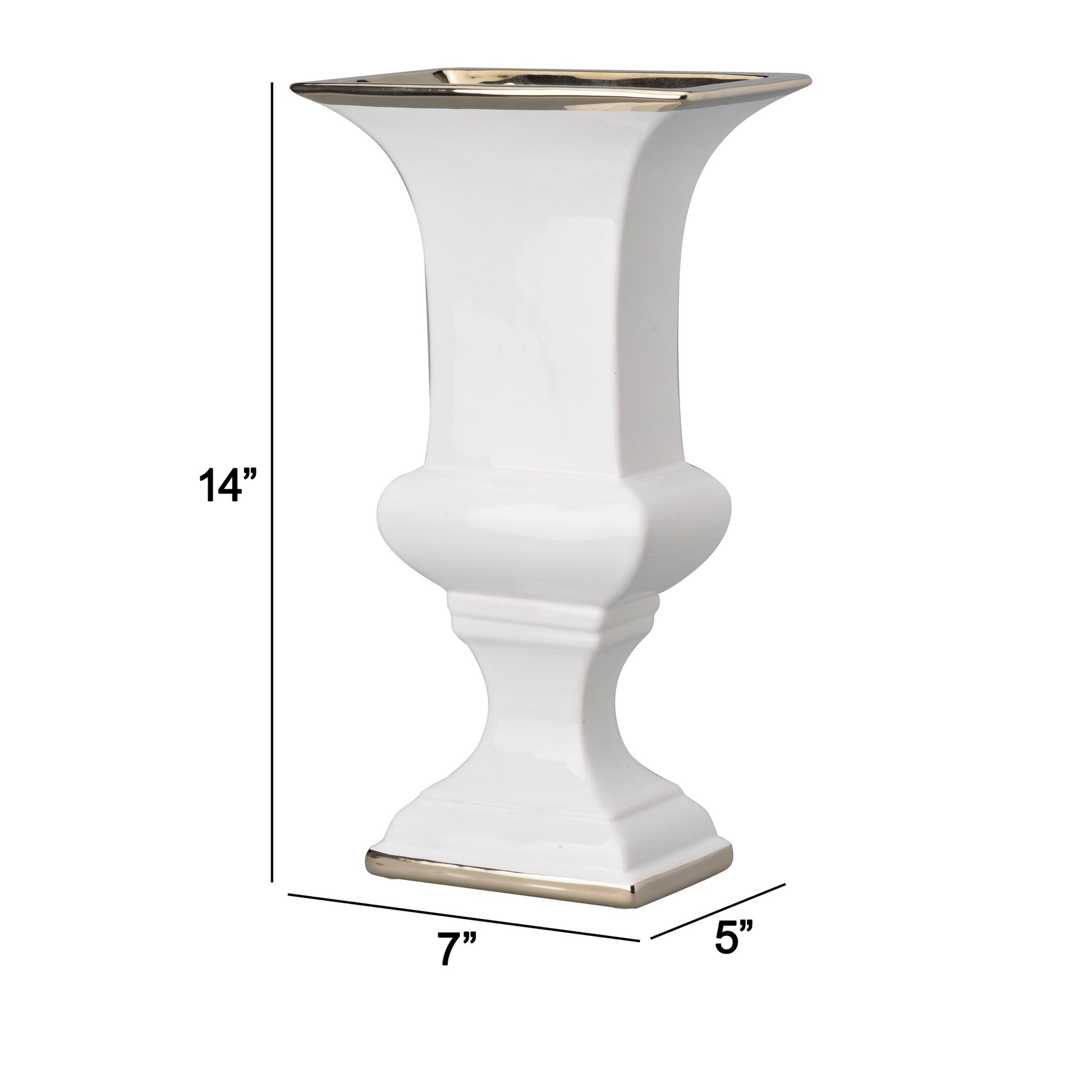 14 Inch Decorative Ceramic Vase Artistic Turned Urn White And Gold Rim