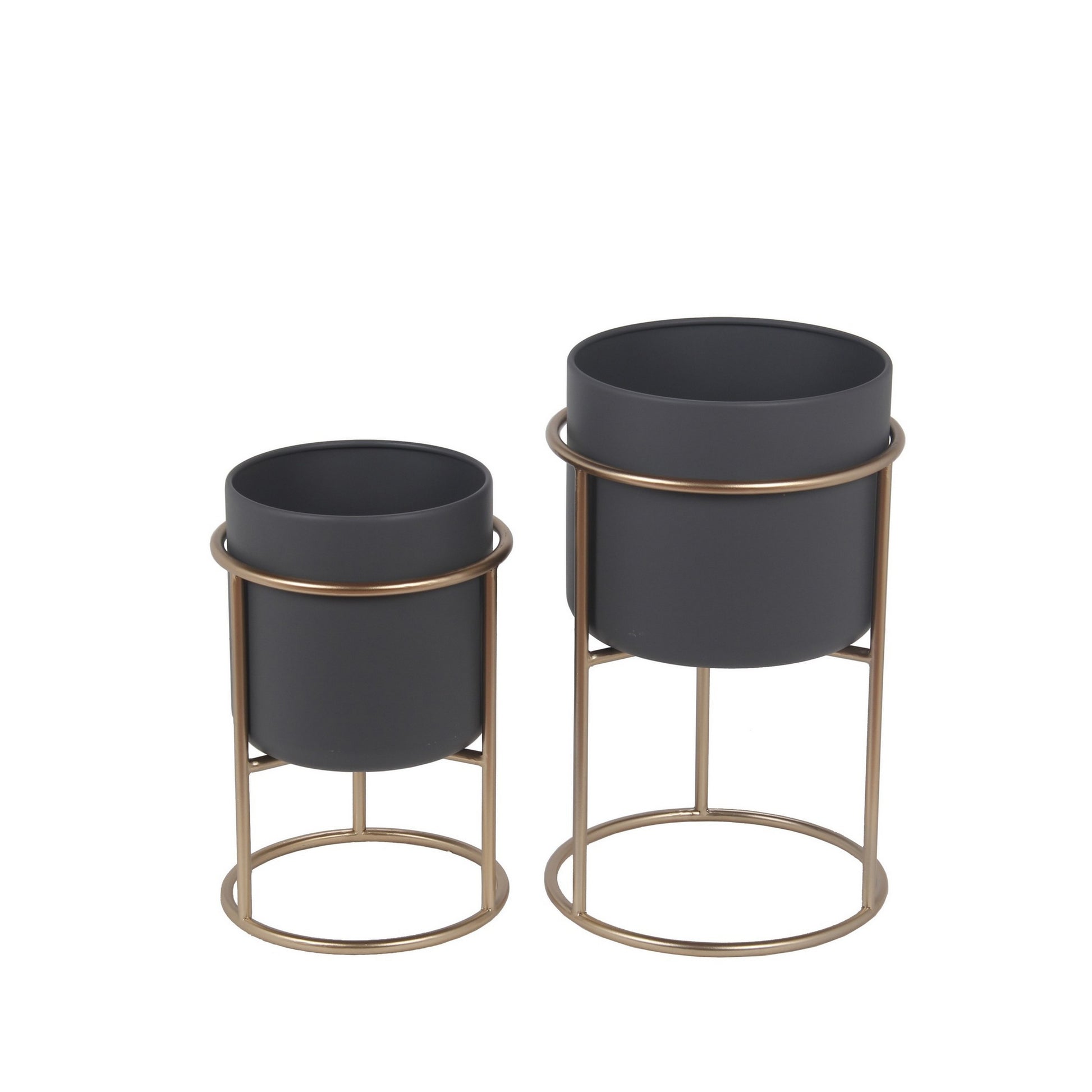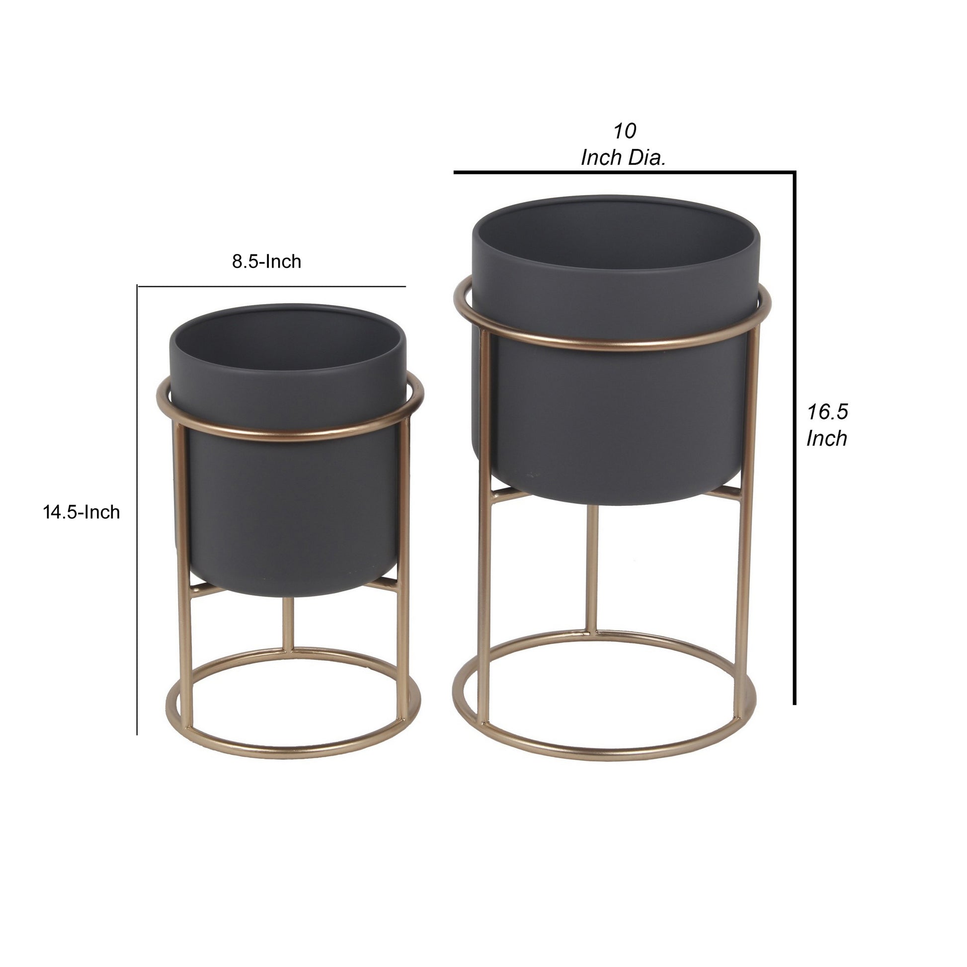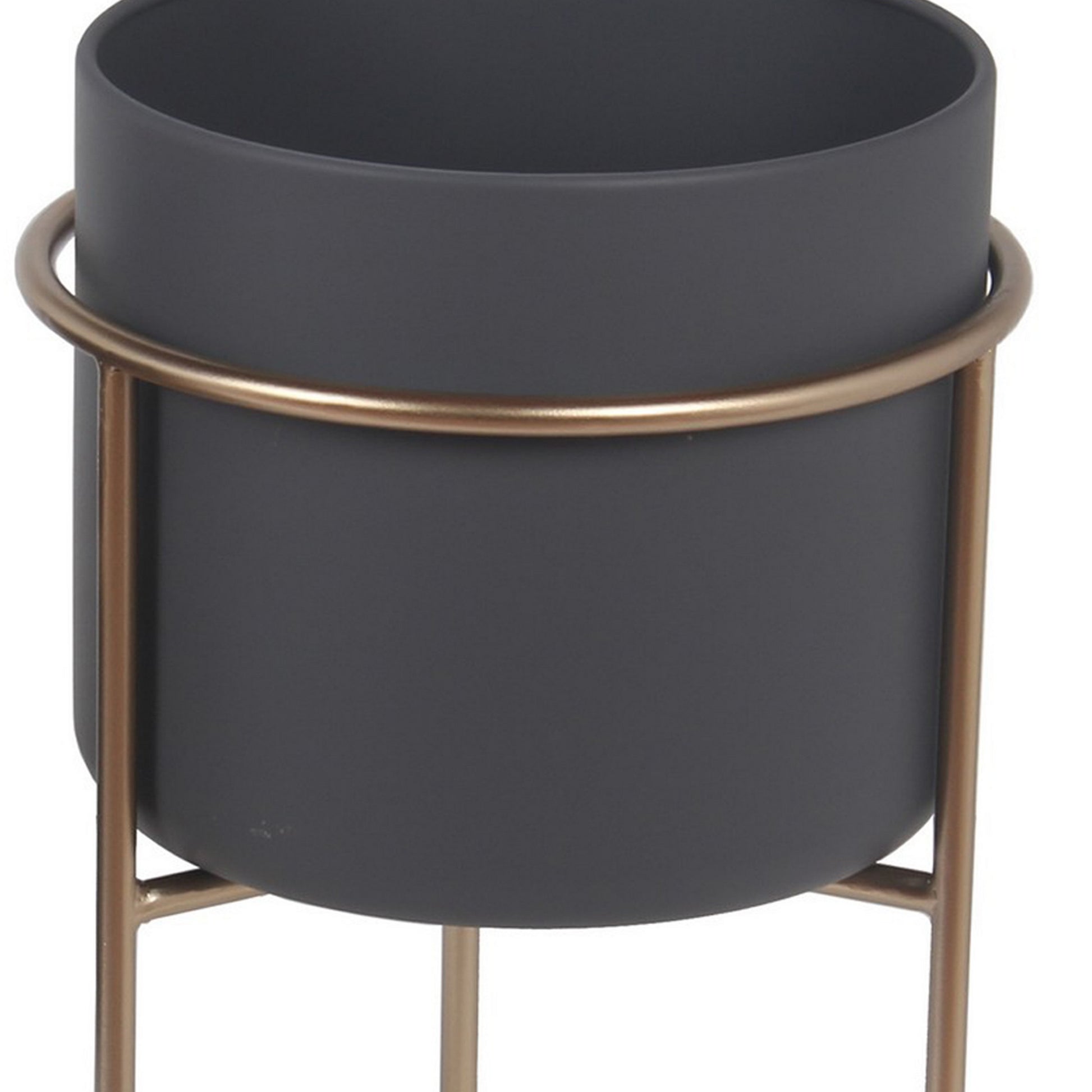 Designed with a sense of timeless elegance, this functional and phenomenally designed decorative planter, available in a set of two, is perfect accents to any modern home. Crafted from metal with smooth cylindrical planters in a matte gray finish, this piece is an effortlessly easy way to give your home an extra hint of oxygenated air and a touch of sophistication and style.