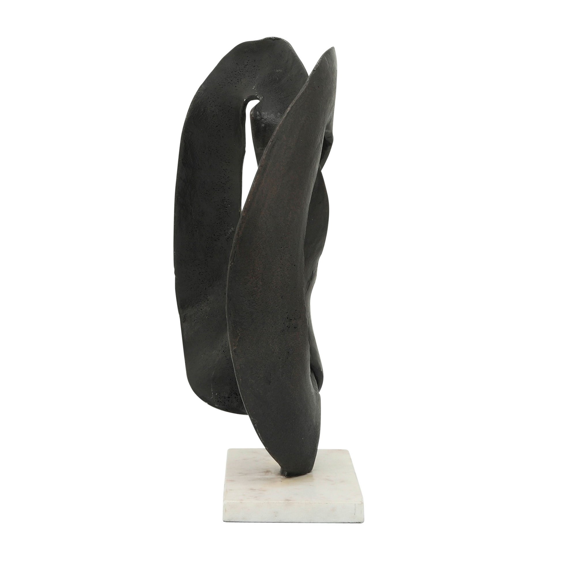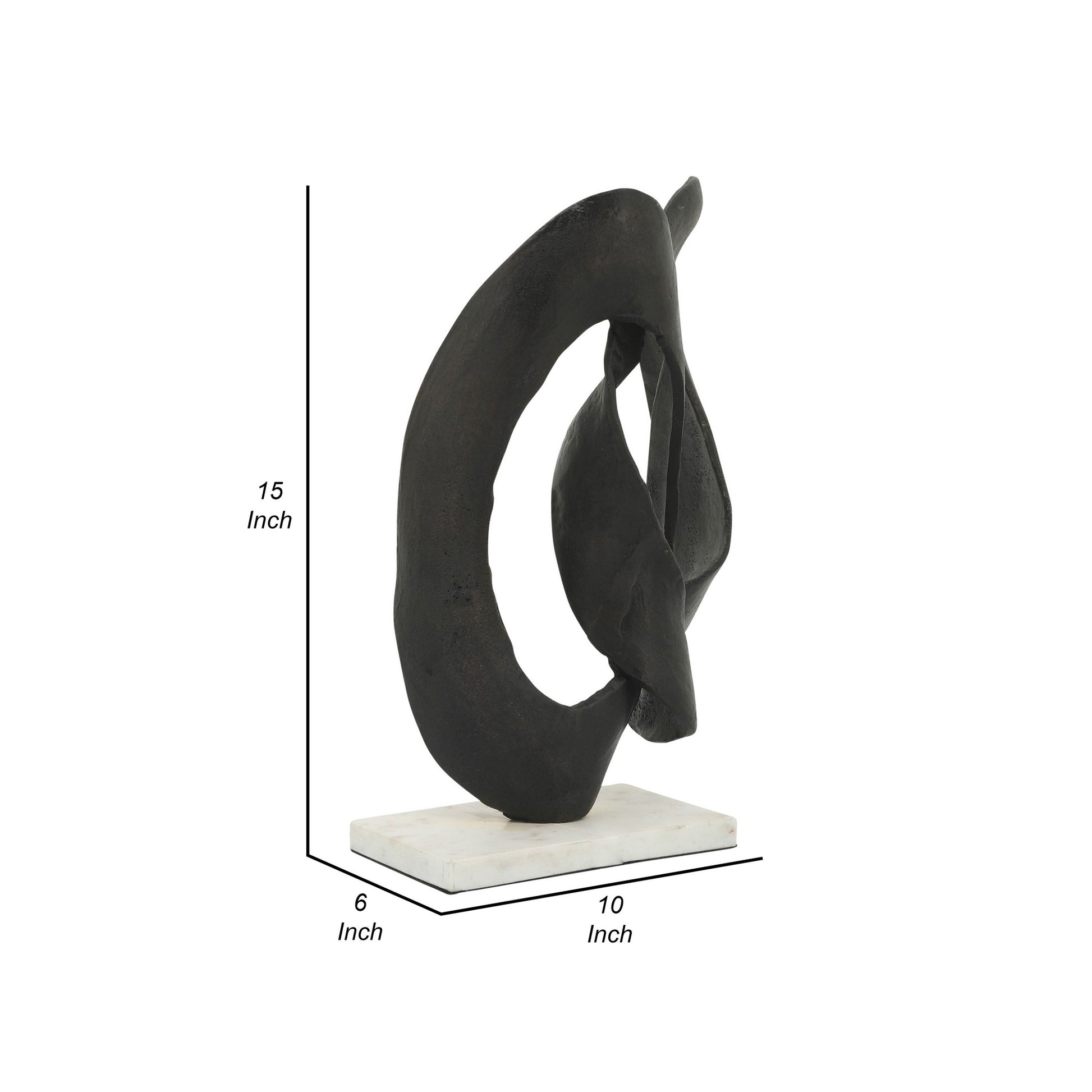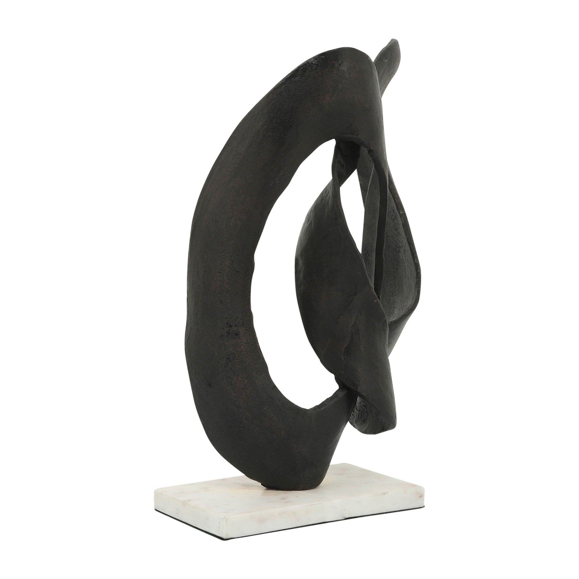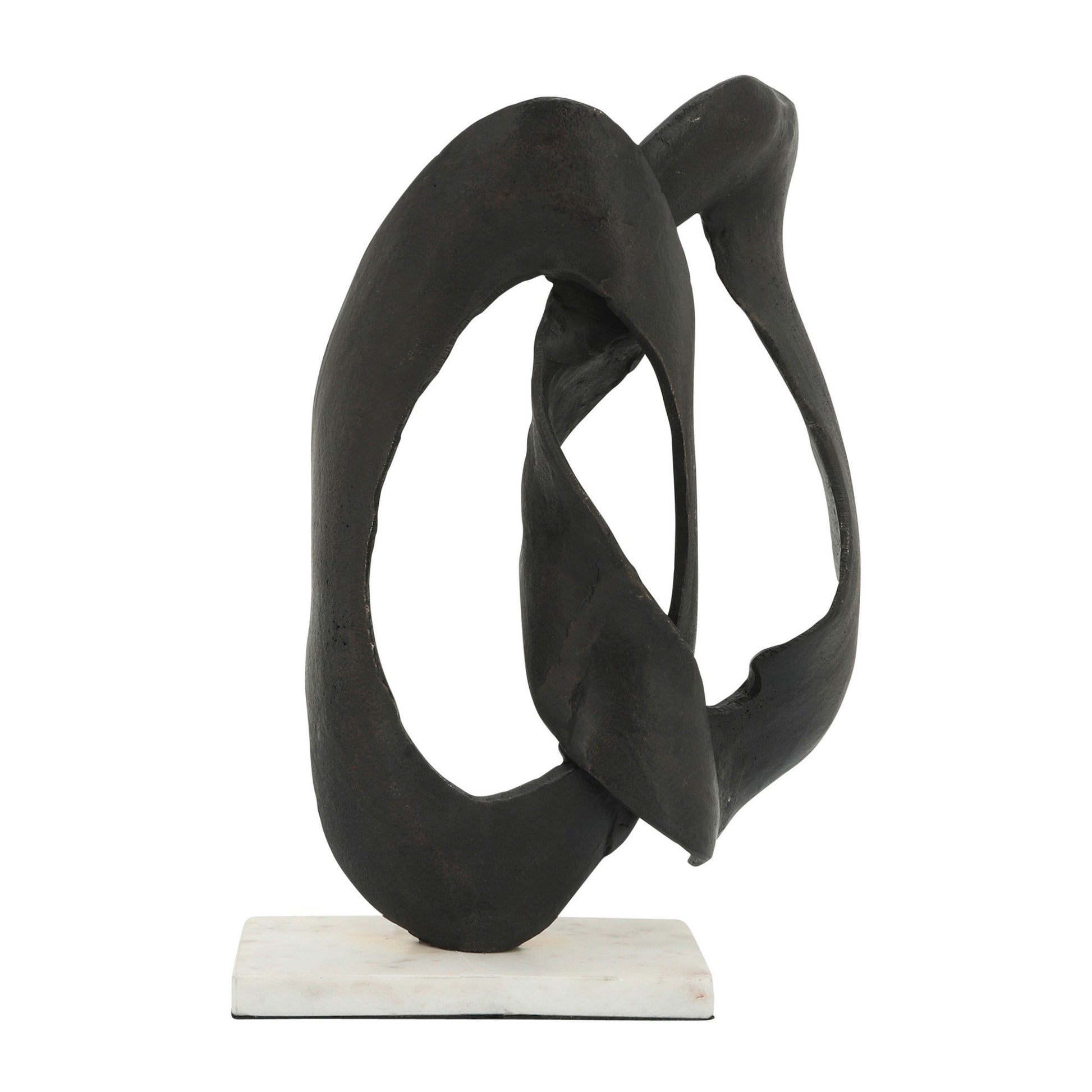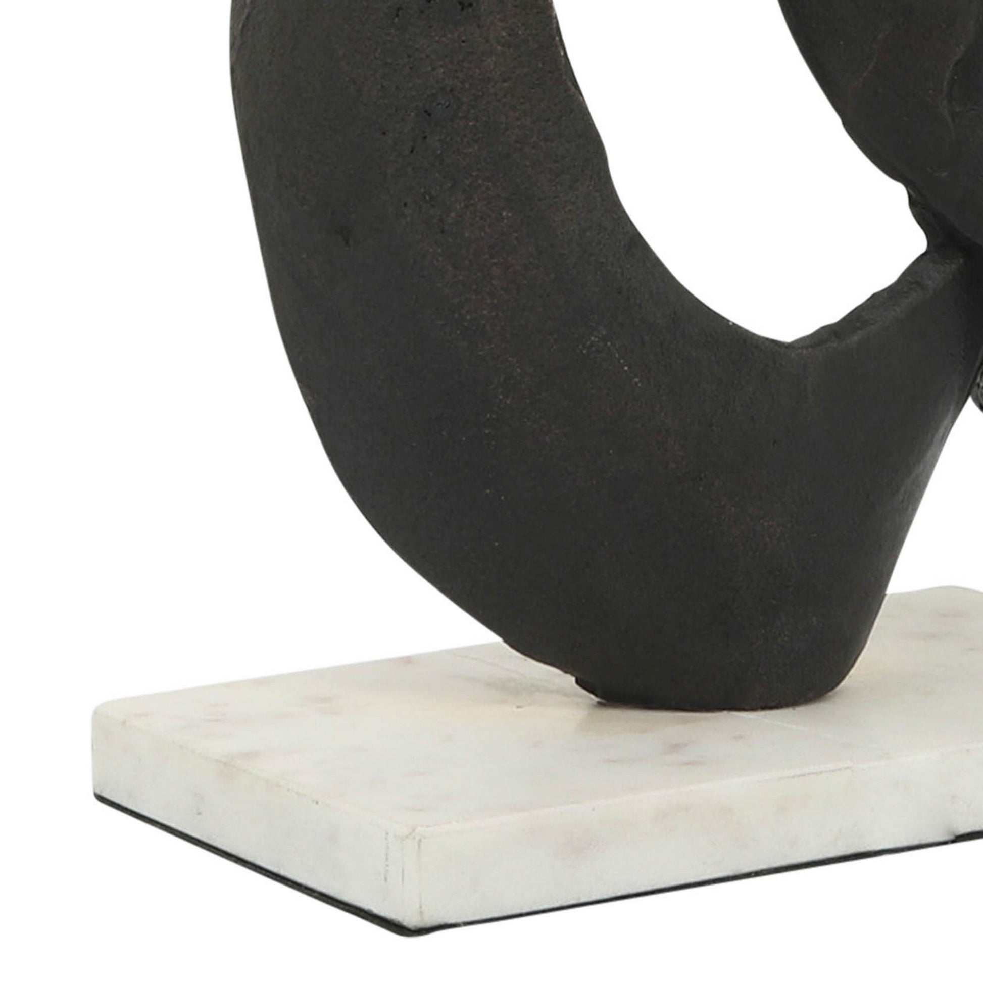 Luxuriously stylize your counter, bar, or kitchen table with this chic modern art decoration. Made with sturdy aluminum metal, it features a sophisticated, even interpretive knot design that brings to mind a dancing of symbols and an interplay of smooth curves. Planted atop a strong marble base, this is a guaranteed showstopper of a decoration no matter what stage you place it on.