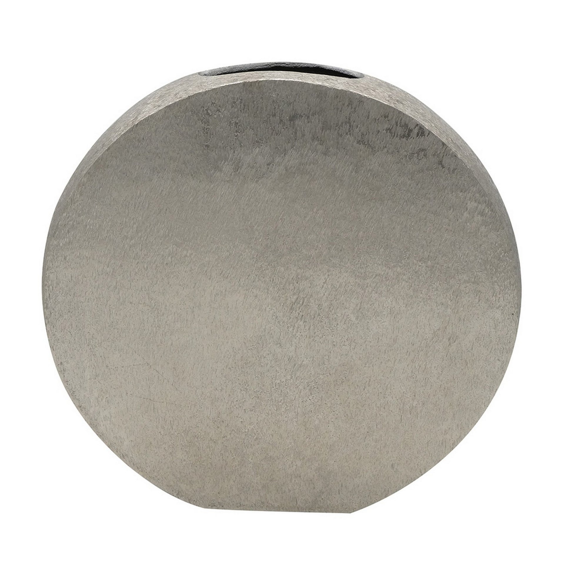 With an eye catching texture and a striking, shimmering silver finish, this round disc like vase is perfect for placing aromatic flowers, bouquets, or simply adorning your home as a standaloine decoration. Crafted from durable and lightweight aluminum, the compact design makes it a perfect piece to be placed on your living room mantle, center table, study table or office desk.