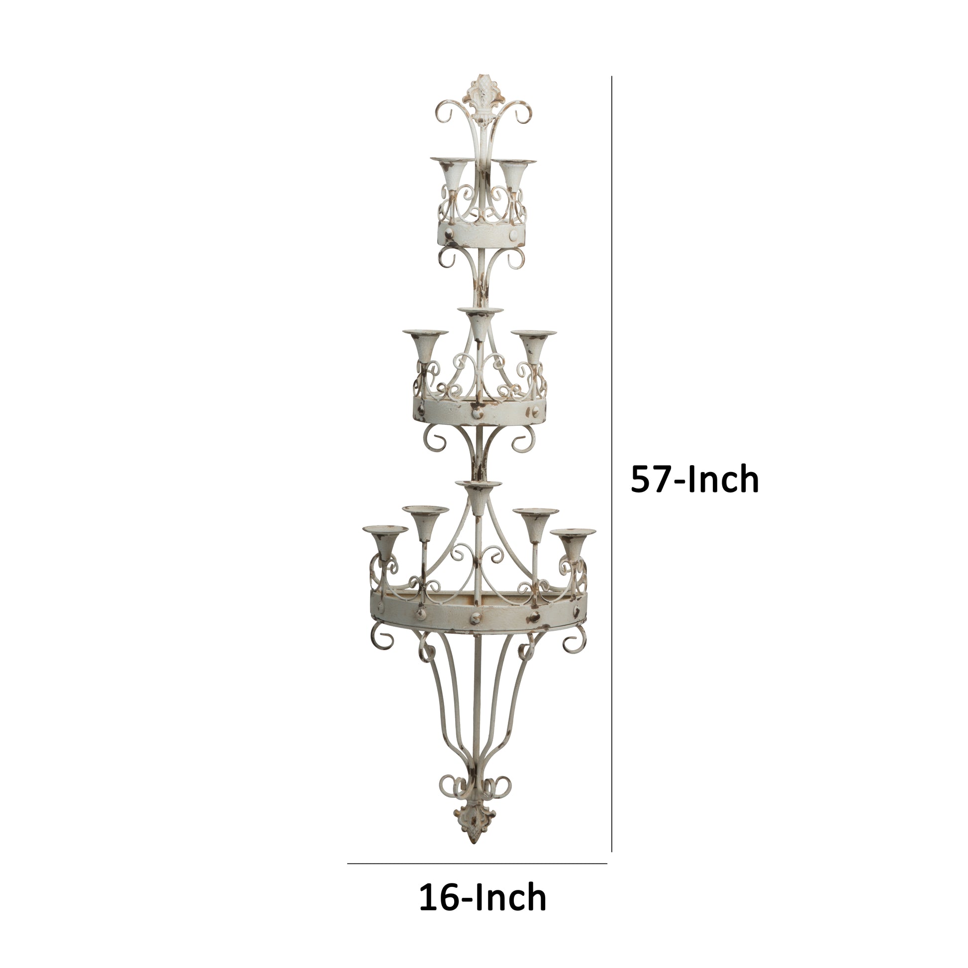 16 Inch Wall Mount Candle Holder Ornately Scrolled White Metal Finish