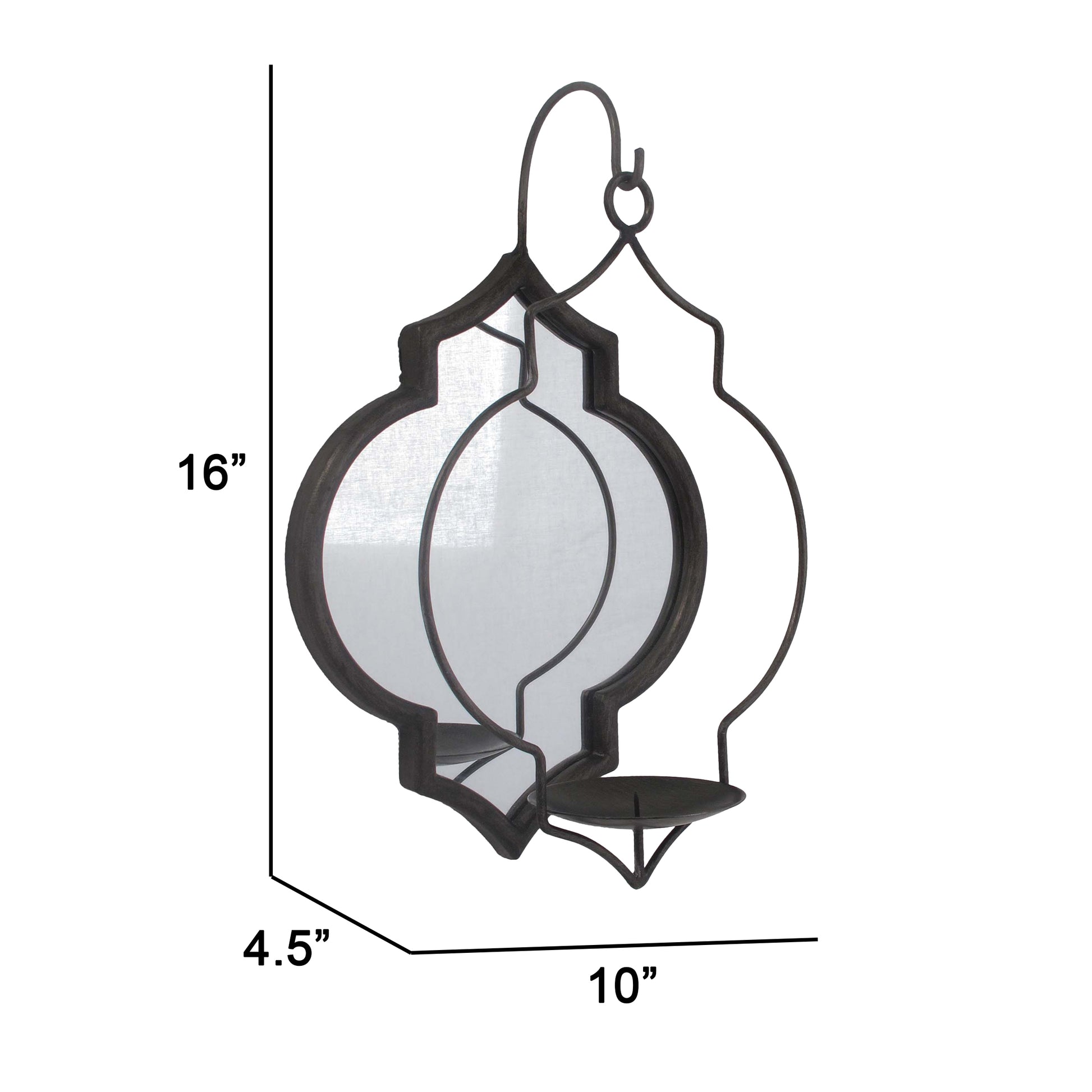 16 Inch Wall Sconce Candle Holder Mirrored Metal Wood Frame Matte Black