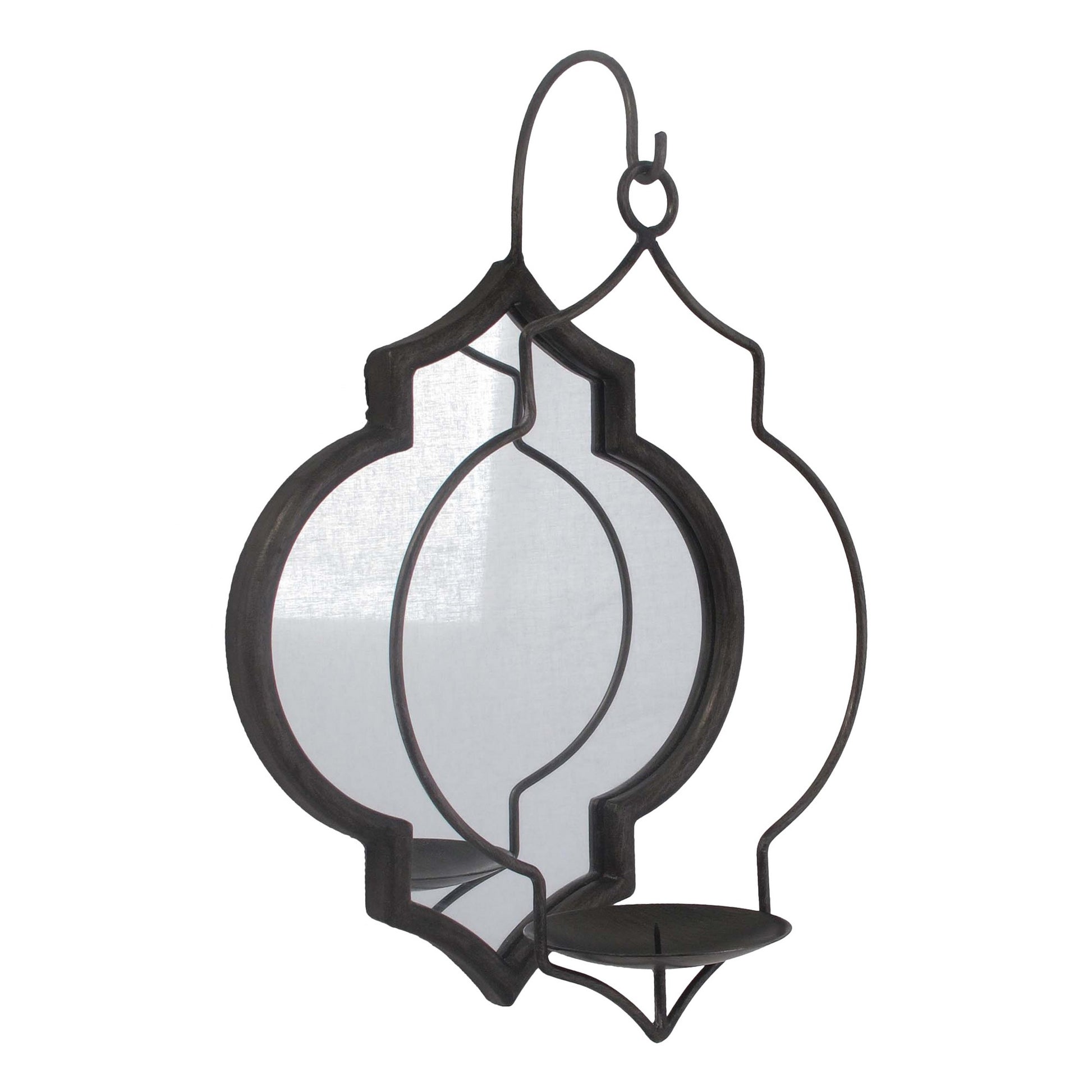 16 Inch Wall Sconce Candle Holder Mirrored Metal Wood Frame Matte Black