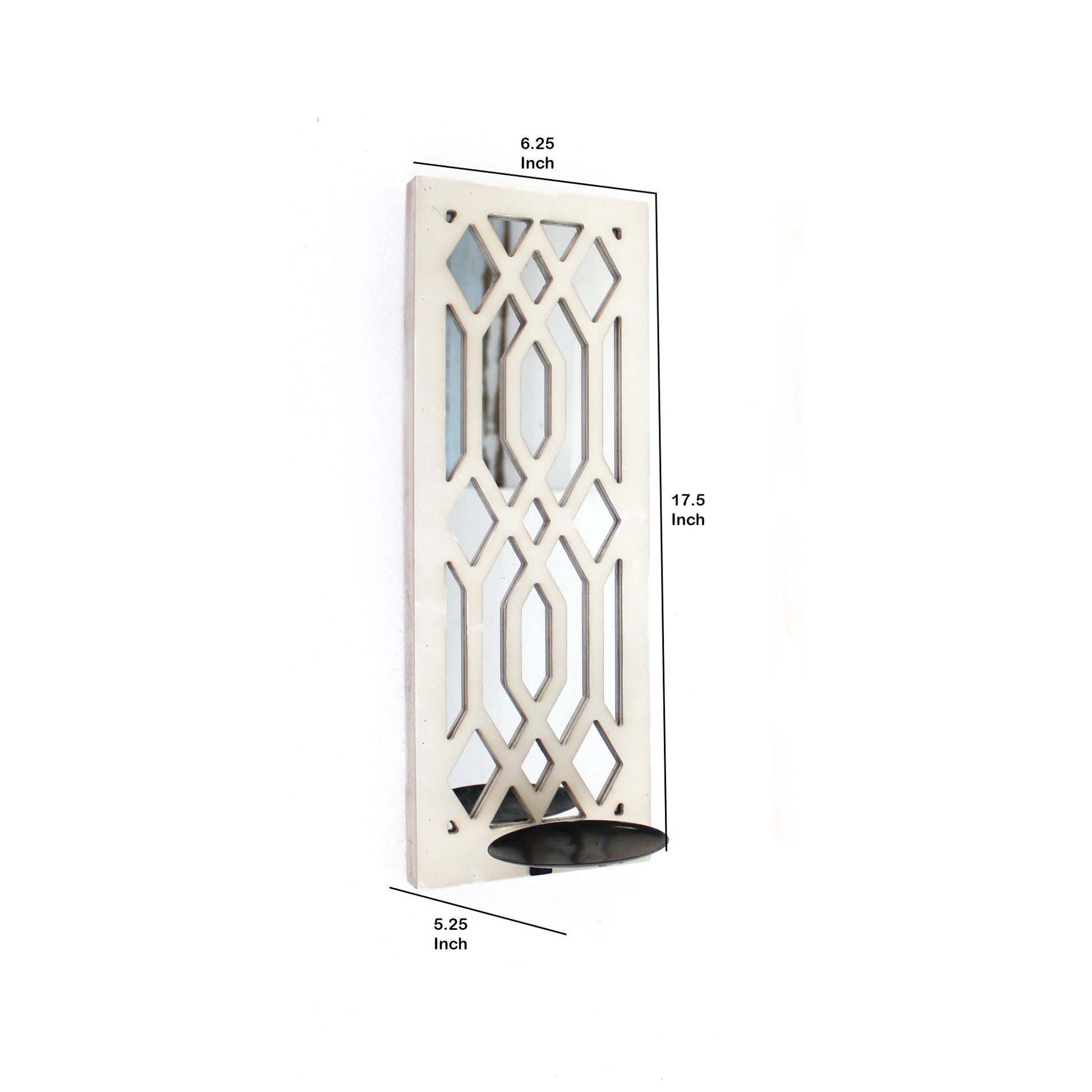 17 Inch Mirrored Wall Art Candle Holder Sconce Lattice Design White