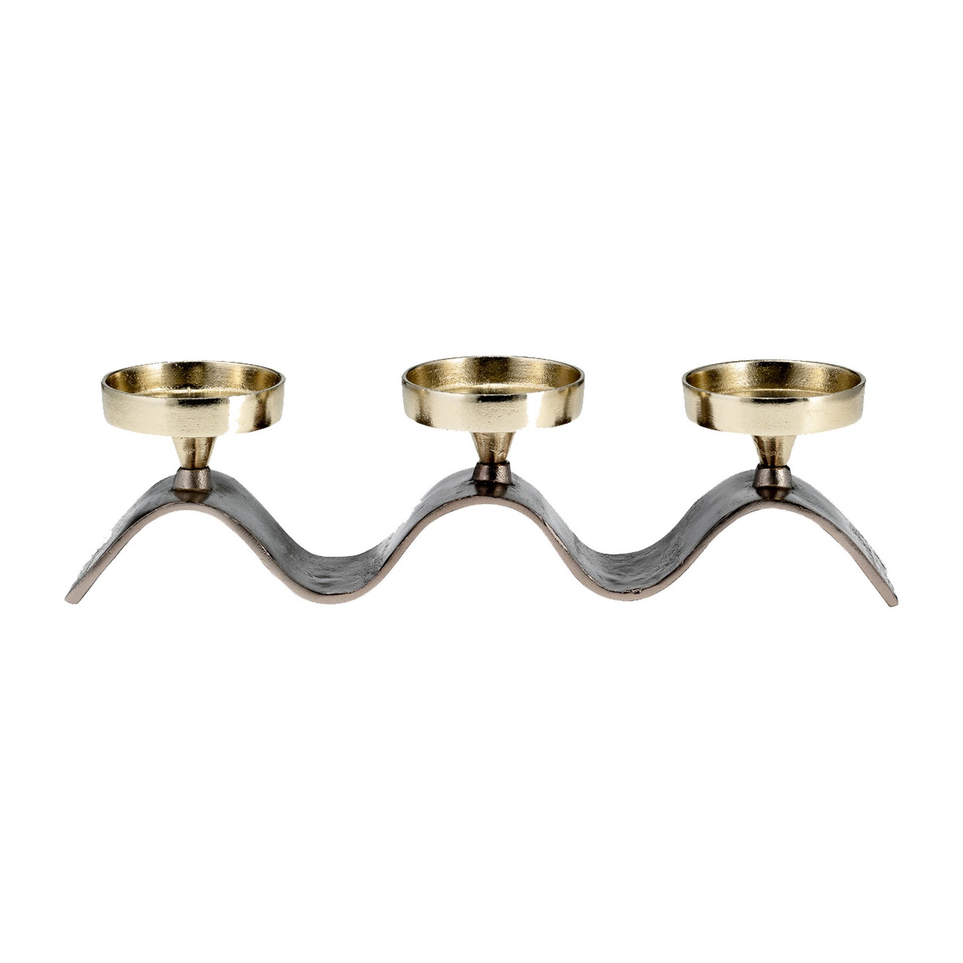 17 Inch Modern Metal Candle Holder 3 Slots Zig Zag Shape Gold Nickel