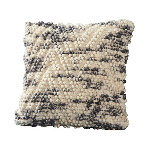 18 Inch Decorative Throw Pillow Cover Beaded Chevron Cream Fabric