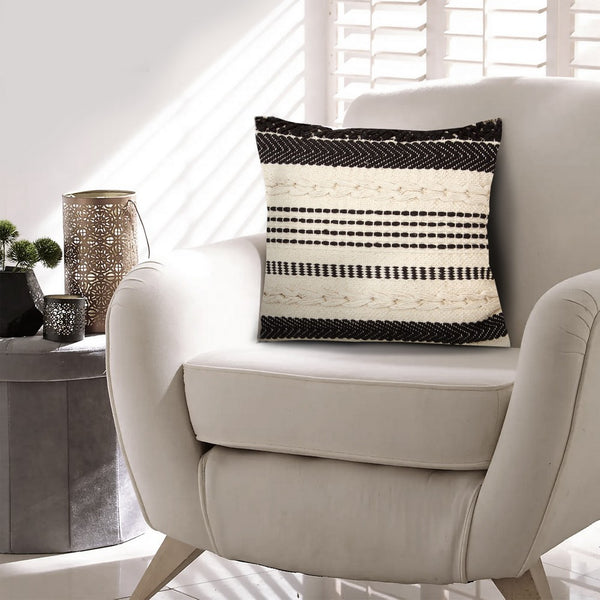 18 X 18 Square Cotton Decor Accent Throw Pillow Herringbone Design Embroidery Cream Black