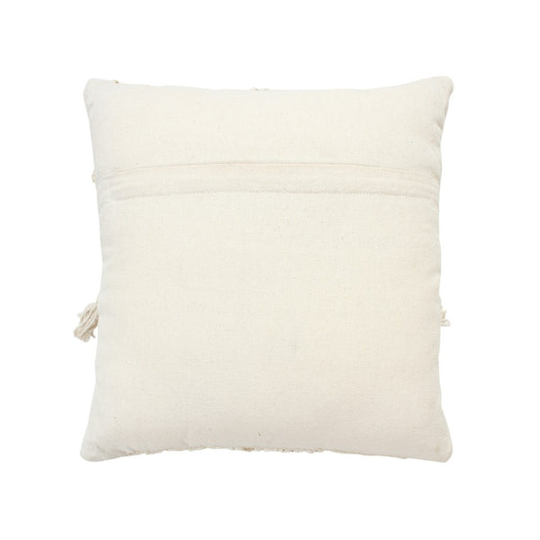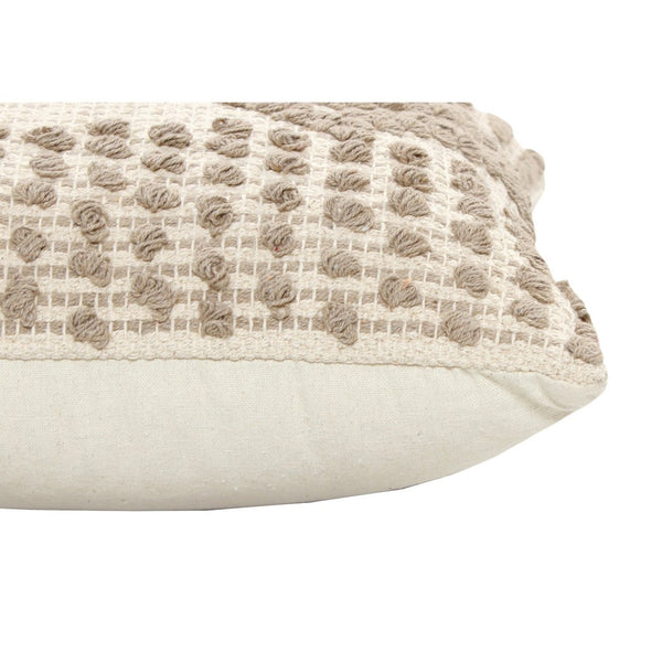 A harmonious monotone beige color meets a vintage transitional style with this accent throw pillow. Featuring a square shape with a clean edge hemmed finish, the trimmed fringe hand embroidery showcases diamond and round raised patterning for an alluring and cozy appeal. Filled generously with soft polyester, the breathable cotton fabric cover has a concealed smooth zipper so that every surface of the pillow is equally soft and plush. This warm, cuddly pillow in its neutral colors blends in with a wide variety of interior decor stylings, be it transitional, modern, traditional or Scandinavian. The solid cream tone back adds a subtle yet bold character to it. Pair this pillow with your sofa, bed, or accent chairs to enhance the aesthetic and comfort of your favorite seating and relaxation area.