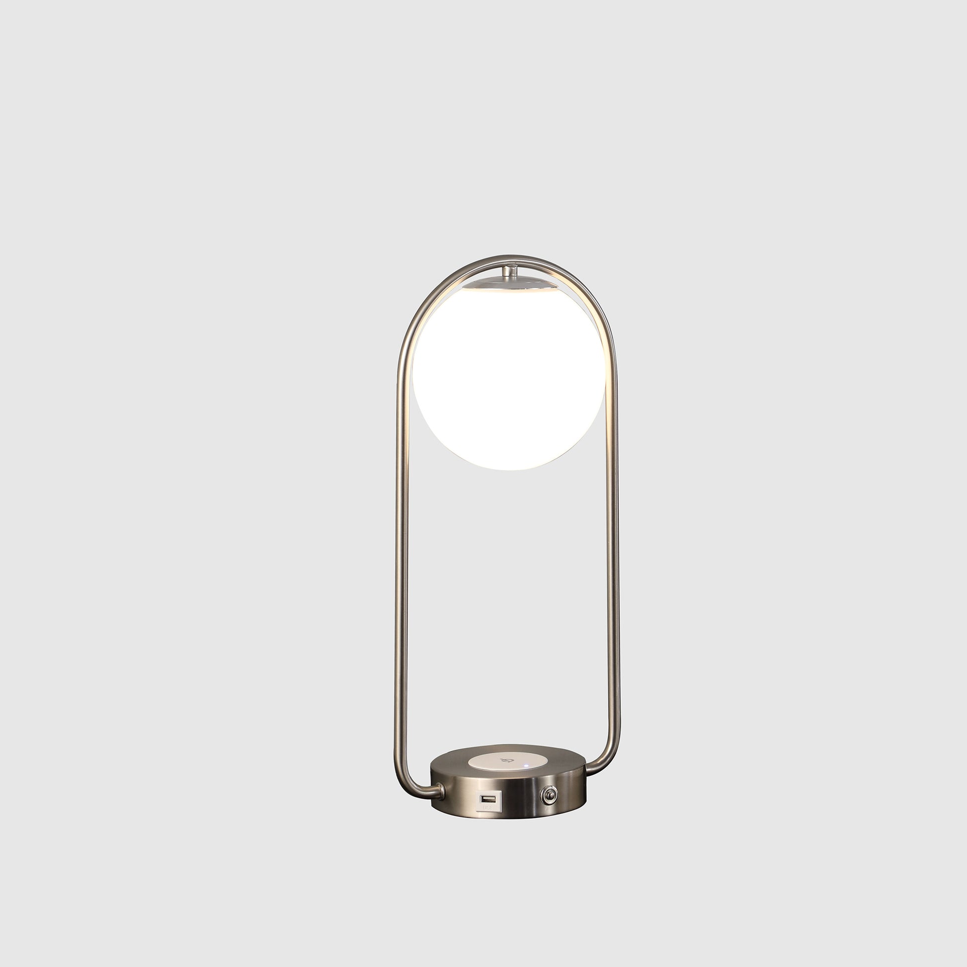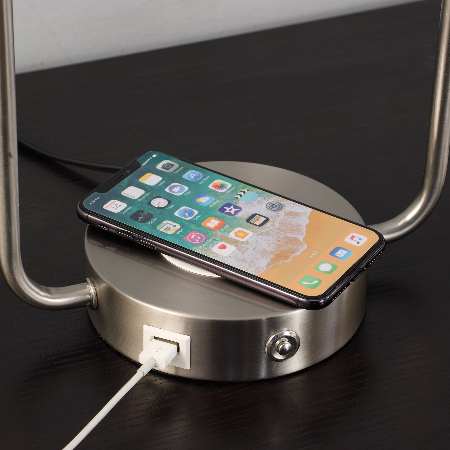 A contemporary retro look with a stylish test tube shape linear frame that towers over the round base. This Neilsen Retro table lamp features a minimal, openwork design and a round globe shade. Attractive retro style defines this table lamp which features a simple linear steel body mounted on a round base paired with a white glass globe shade, creating an open, airy design. A built-in USB ports add convenience to the base of the lamp. The integrated USB port on the lamp's circular base makes these designs perfect for desks or work areas. Or you can set them on either side of the bed to create a sense of contemporary symmetry and charge your smartphone or tablet in a snap! Perfect final touch that ensures inviting illumination in any space. With a clean, simple line, this lamp creates a minimum footprint on your desk or nightstand, leaving you a more clean room. The sleek flat molded base allows for integrated wireless charging for your Apple iPhone or Android mobile phones.This Lamp is the perfect addition to your Home Office, Dorm Room Or Workspace.