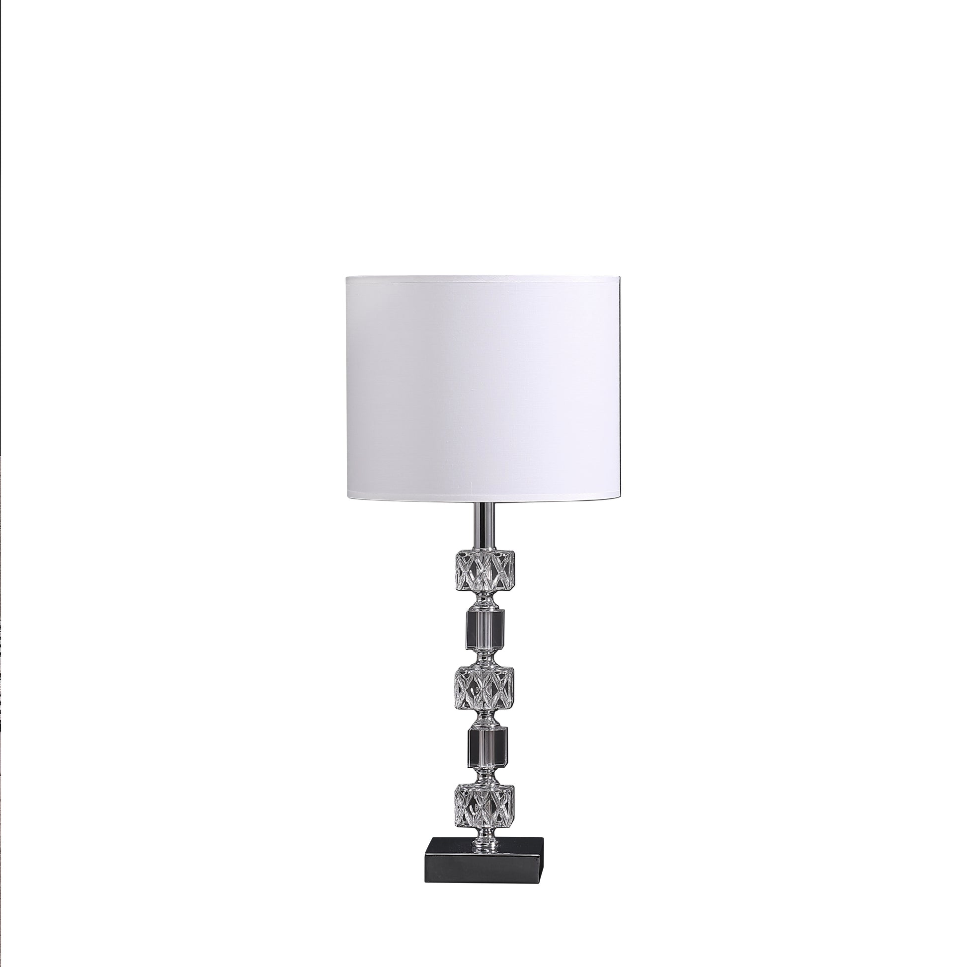 The purity of clear and prism cube crystal is celebrated in the beautifully faceted Jules crystal cube table lamp. This Unique Design Features 3 of Thick Prism Crystal Cube and Mini Solid Cut Crystal , balancing on a Crystal Cube that's displayed on a simple silver chrome steel round base. Channeling cultural and historical influences, this lamp creates distinctive artisan-crafted lighting that make a lasting impression. This Crystal Table Lamp offers a light, bright accent to your space. Blend the best of what is new in home fashion with this great designs of the past, resulting in updated designs that fit perfectly with an array of styles. Handsome and sophisticated, this stunning lamp will brighten a study, library or living room in styles from classic to soft contemporary. The design features a cube orbs style base, made from cut crystal, which bounces light all around the room from its many facets and providing a well rounded element to the design. Place this lovely design anywhere in your home that needs illumination and modern elegance.