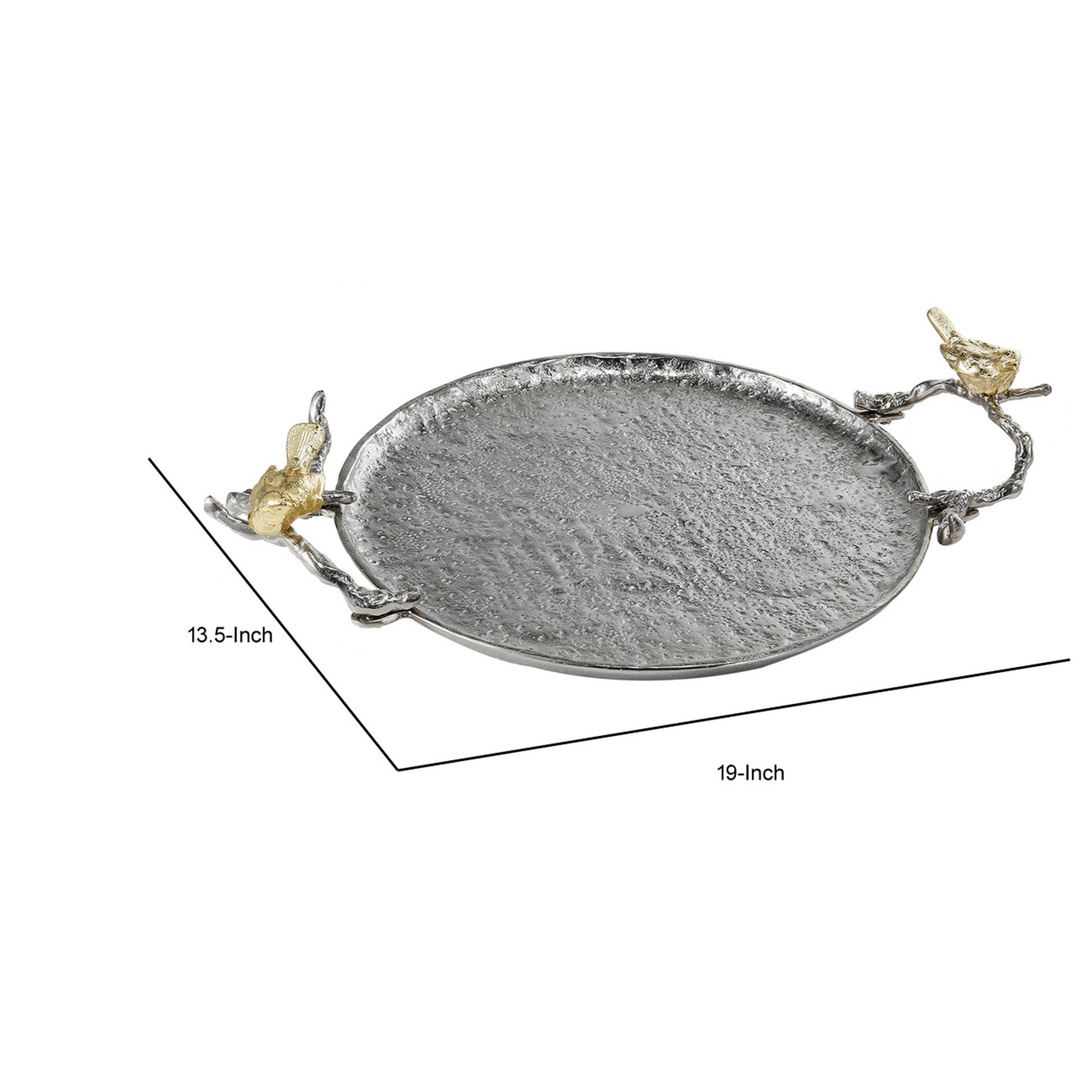 19 Inch Decorative Tray Perched Birds Silver Metal Medium Set Of 2