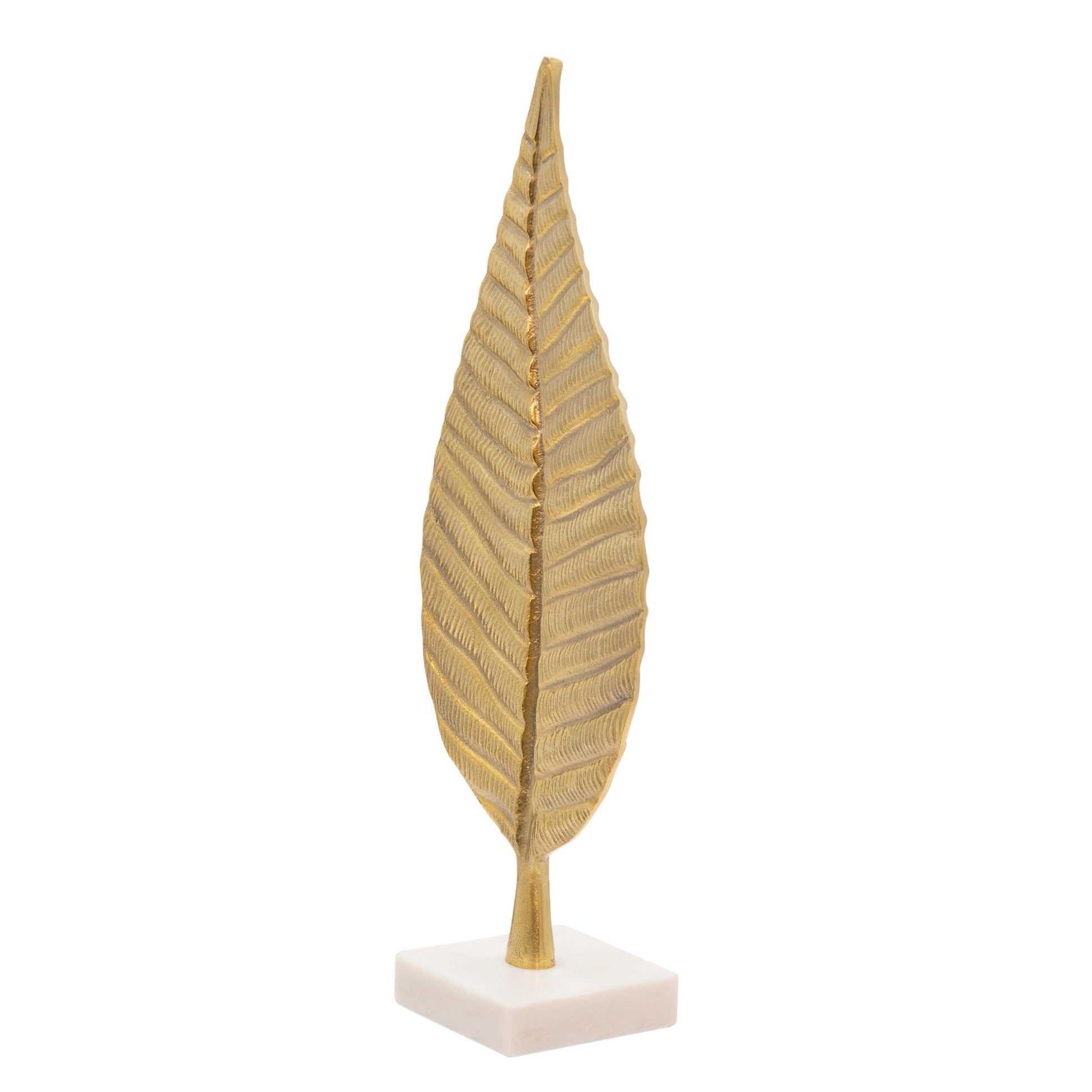 19 Inch Modern Leaf Accent Decor White Block Base Gold Finished Aluminum