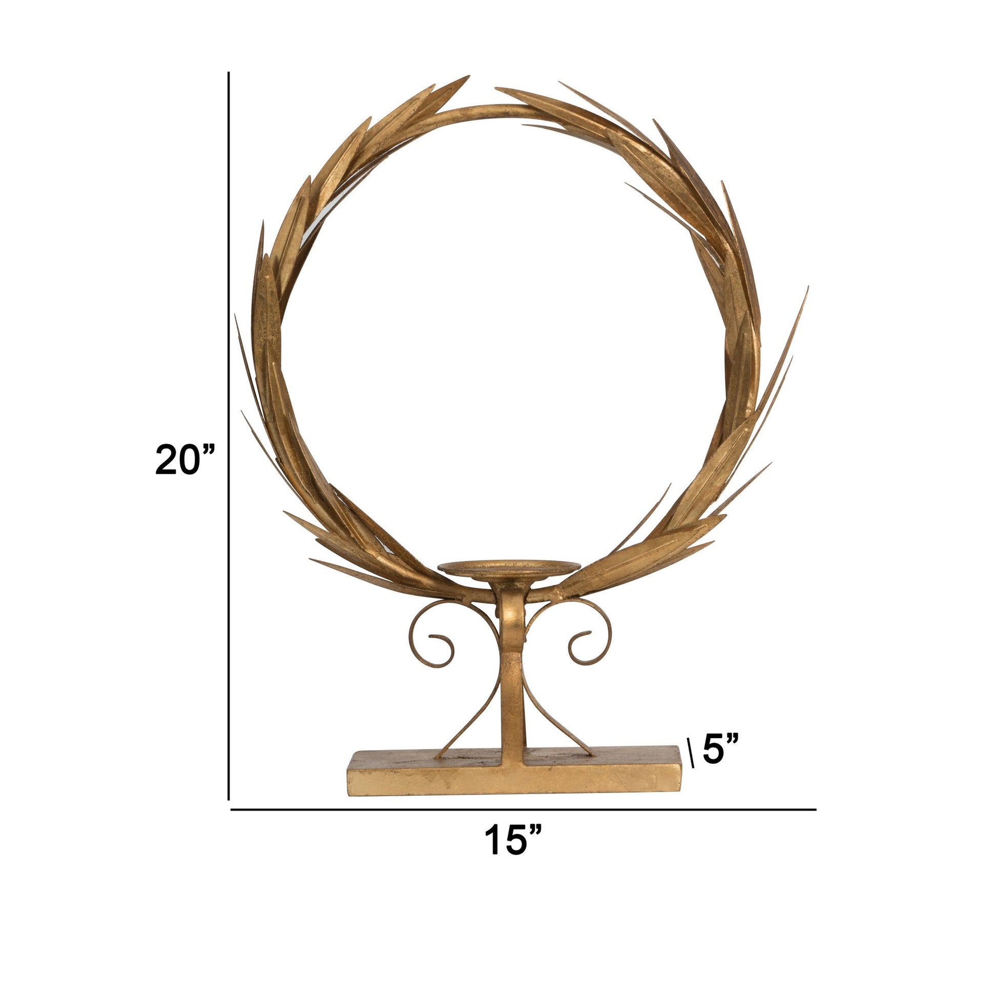 20 Inch Luxury Accent Candle Holder Laurel Wreath Metal Frame Gold Finish