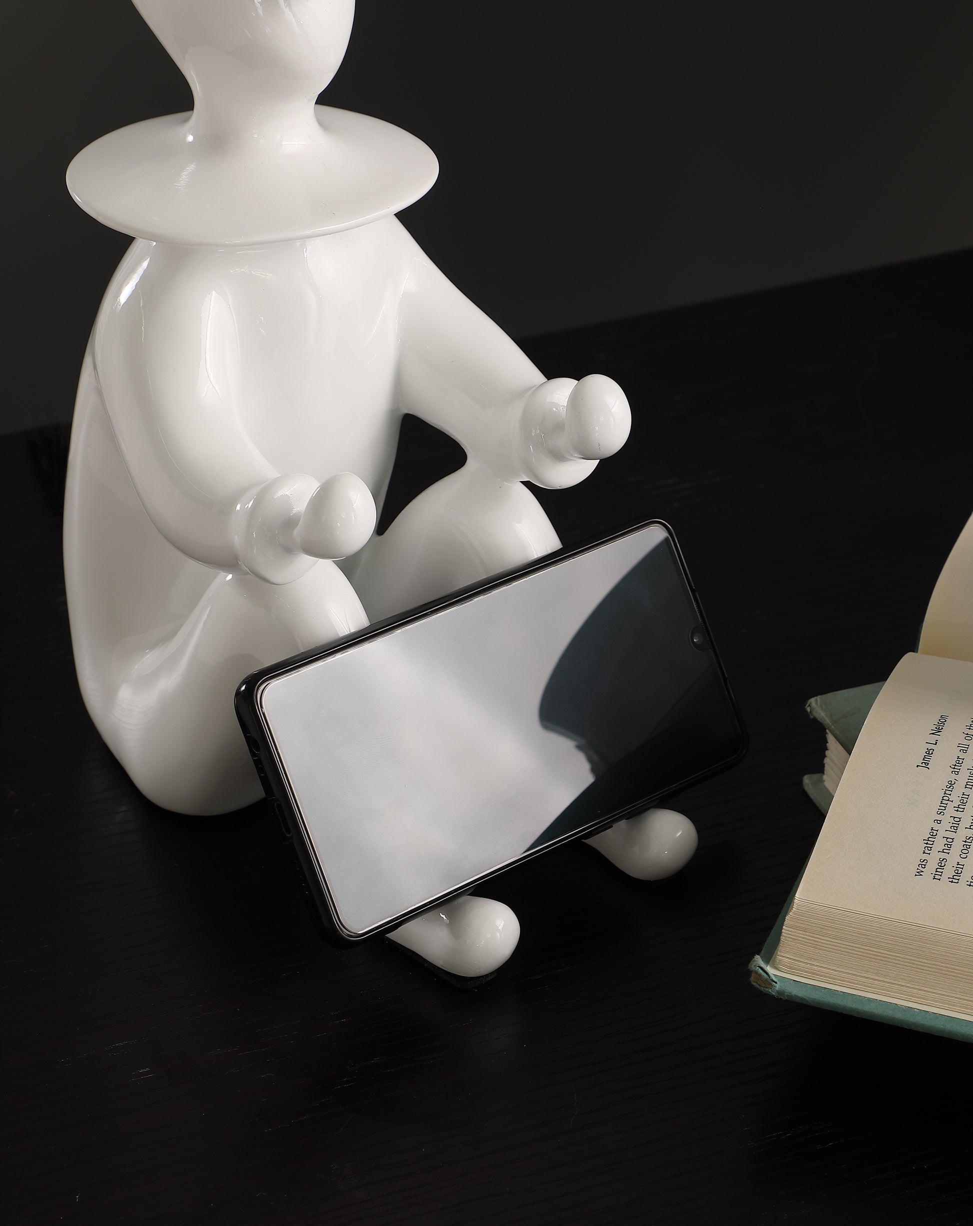 21.25" In White Modern Clown Phone Holder Resin Table Lamp