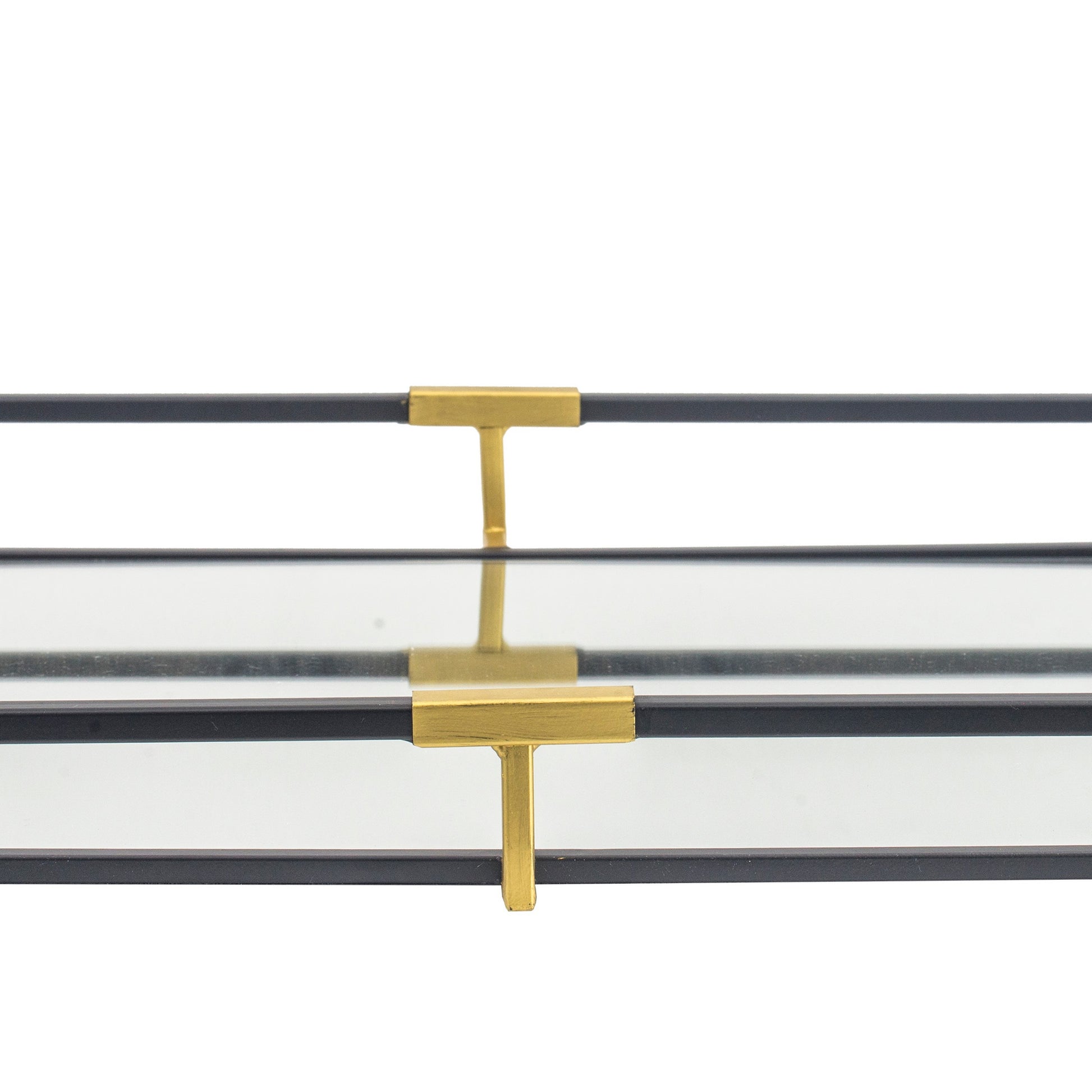 Glistening with grace and serene elegance, this modern, luxurious set of two decorative trays is perfect for displaying potted plants, favorite decorations, and cherished memories with ease and subtle aplomb. The elongated rectangular shape is crafted with a strong geometric frame and a mirrored bottom base for a look that nestles comfortably between simple and opulent.