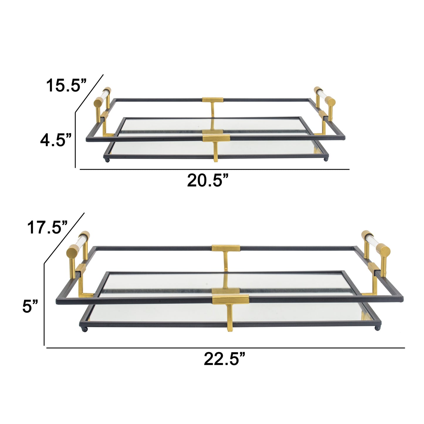 21 27 Inch Set Of 2 Decorative Trays With Mirror Modern Frame Gold Black