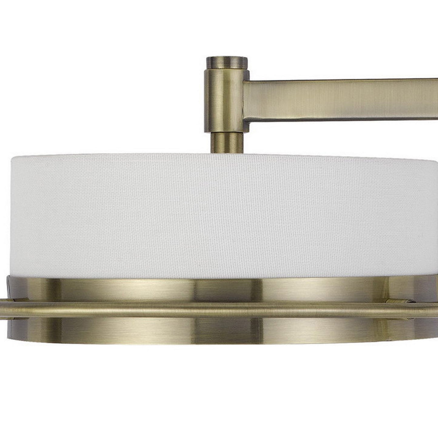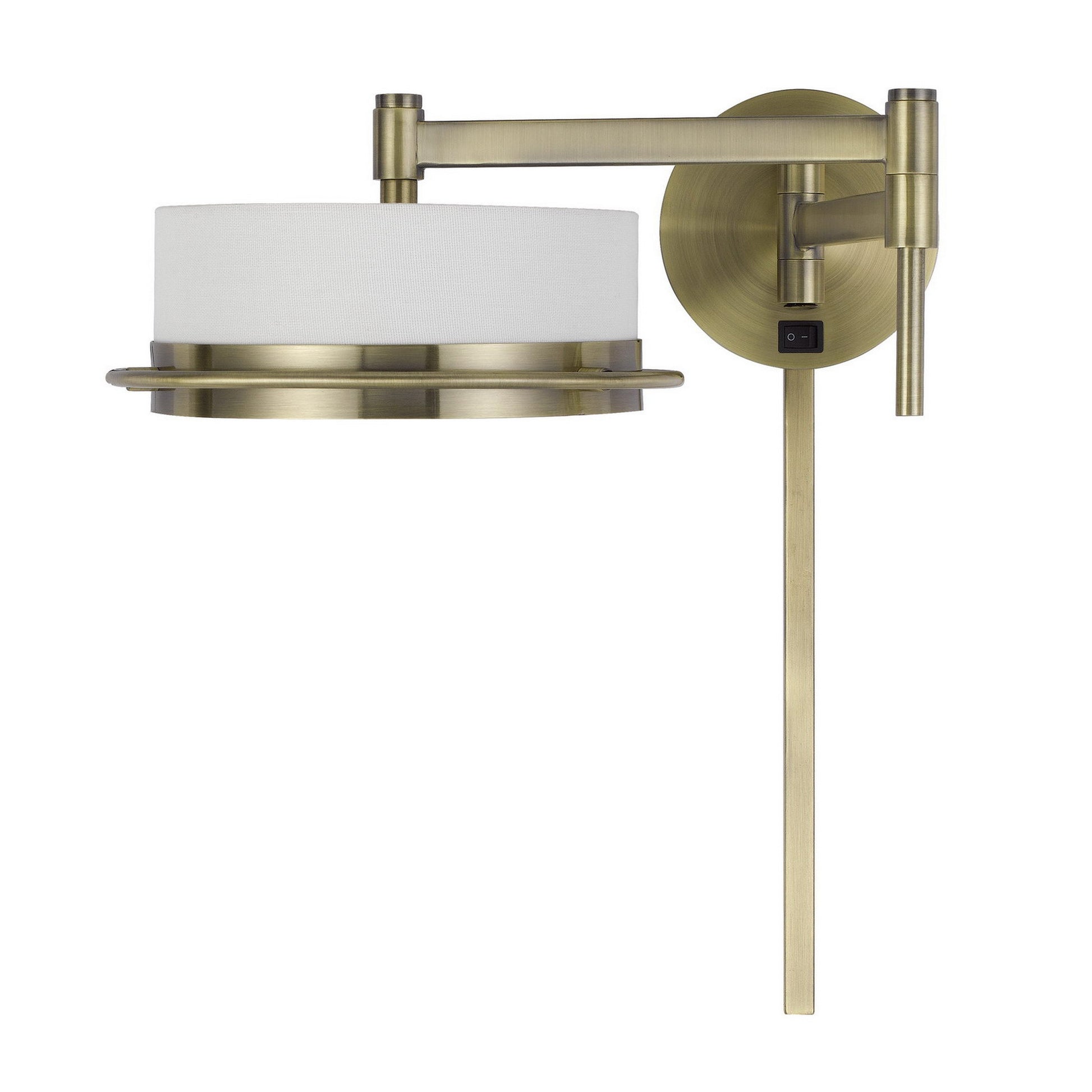 Give your living space an edge of comfort, style, and effortless practicality with this charming wall lamp. Made of strong, antique brass finished metal, it features a white fabric shade with a striking metal trim, a unique swinging arm for customizable lighting, and a contemporary visual aesthetic that is sure to brighten up any room in your home in more ways than one.