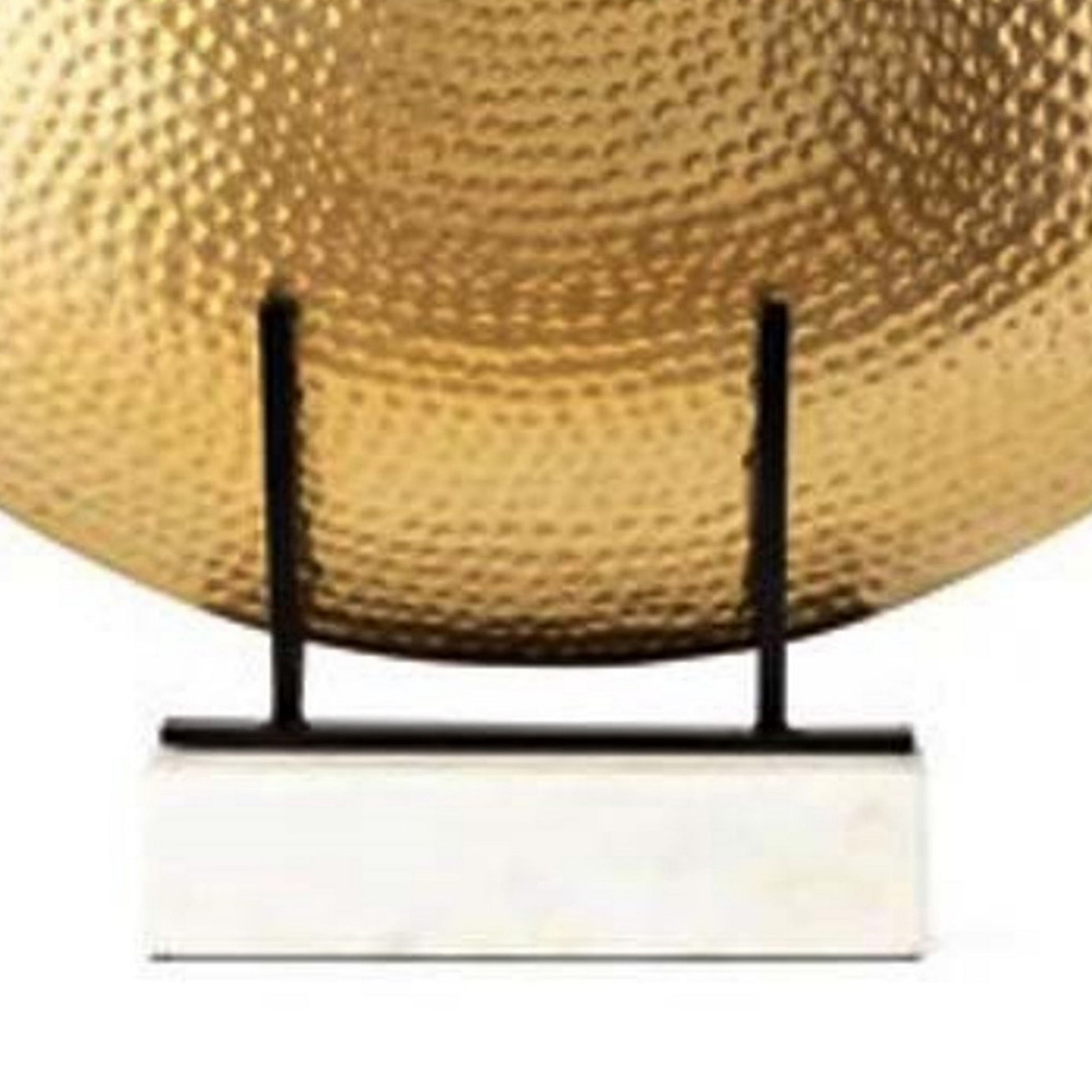 22 Inch Round Statuette Tabletop Decor Gold Disk White Marble Base