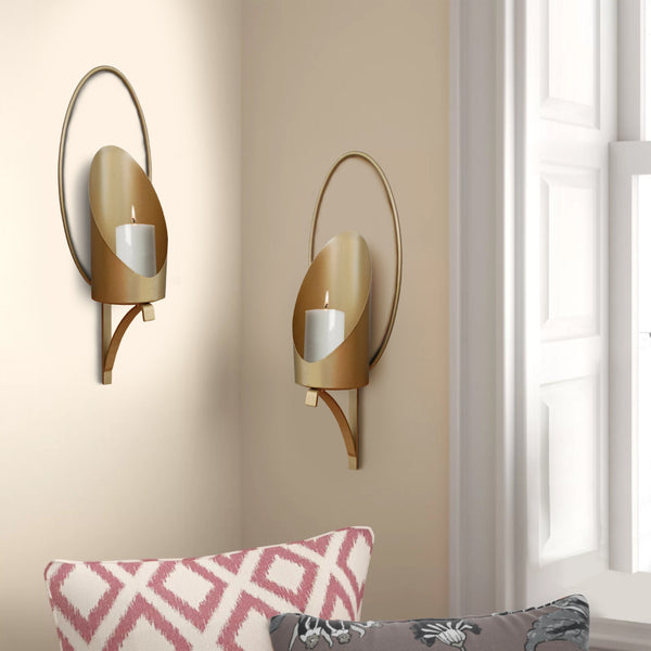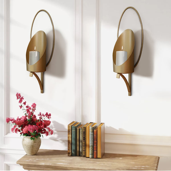 Give the walls of your home a beautiful new touch of modernistic charm and time-tested beauty with our gorgeous set of two matte gold wall mounted sconce candle holders. This set is meticulously made with fine quality iron in a sleek, smooth rounded tulip shape in a matte gold finish for an aura of elegance and modern beauty. Mount this opulent fixture on a wall in your dining room, living room, bedroom or in any hallway and watch as its welcoming light basks your home in tantalizing style. This piece is perfect for illuminating dark corners and increasing the style quotient of any foyer, bedroom, living room, or a lobby. Match it with virtually any decor style such as contemporary, modern, classical vintage, or industrial farmhouse due to its classy, timeless silhouette and finish,