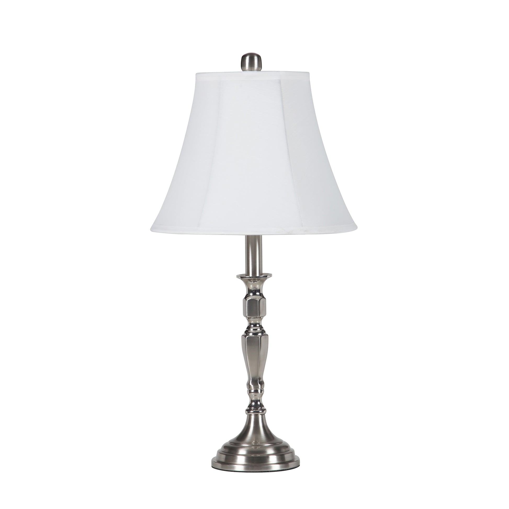 • Material: Brushed Silver Nickel Table Base, Cotton/Linen Empire Shade.