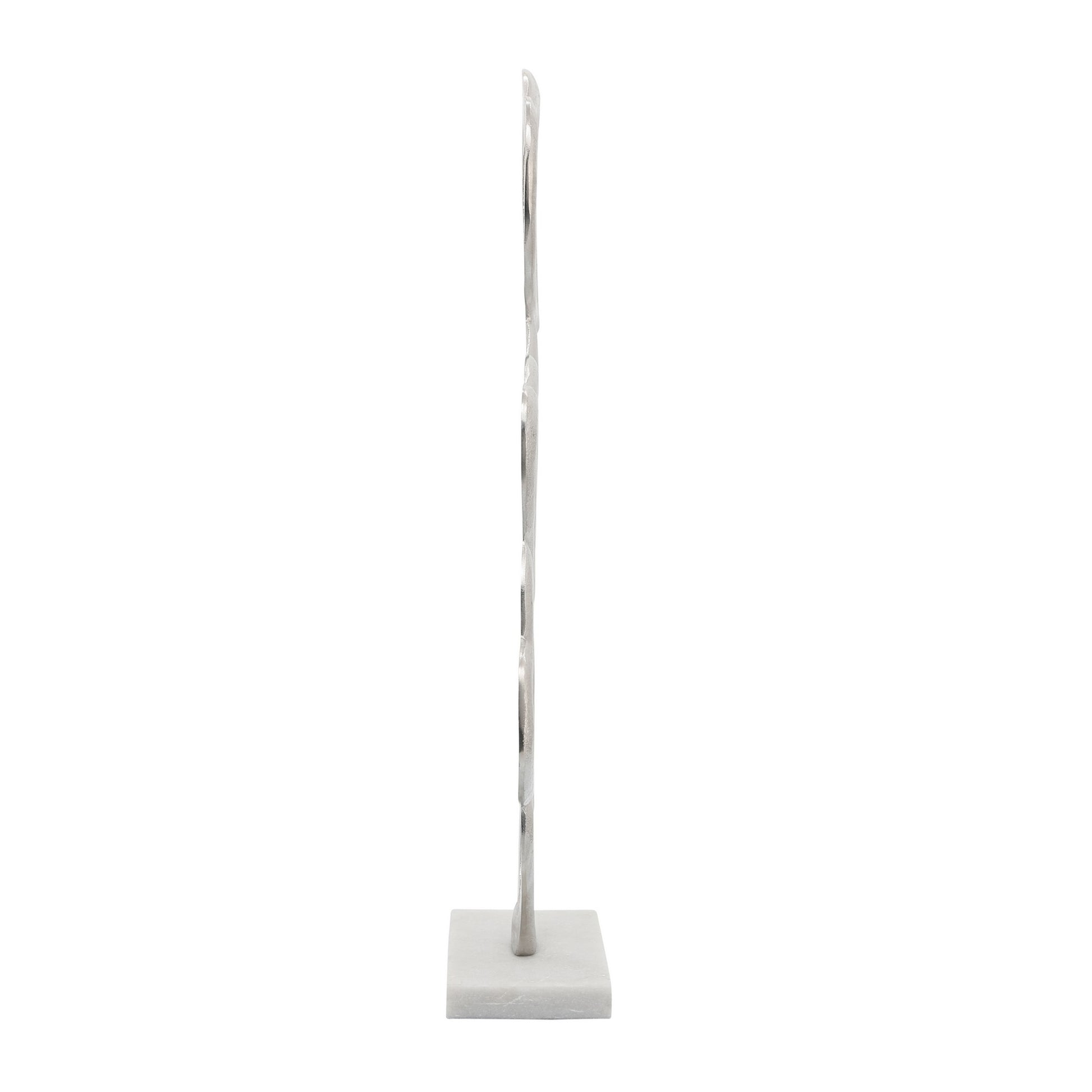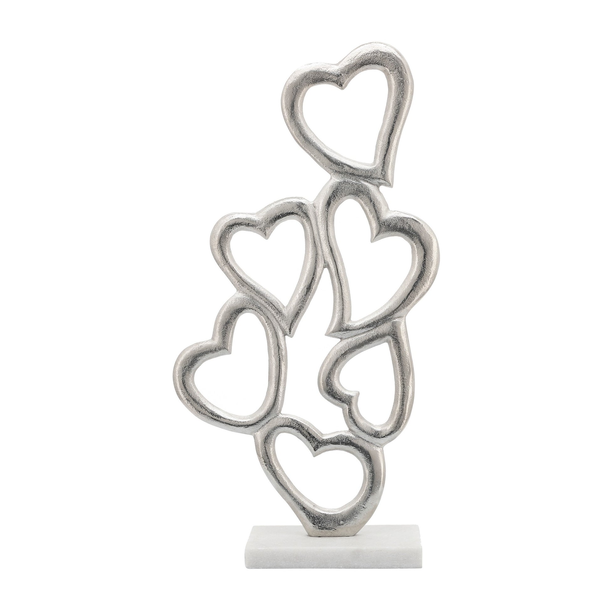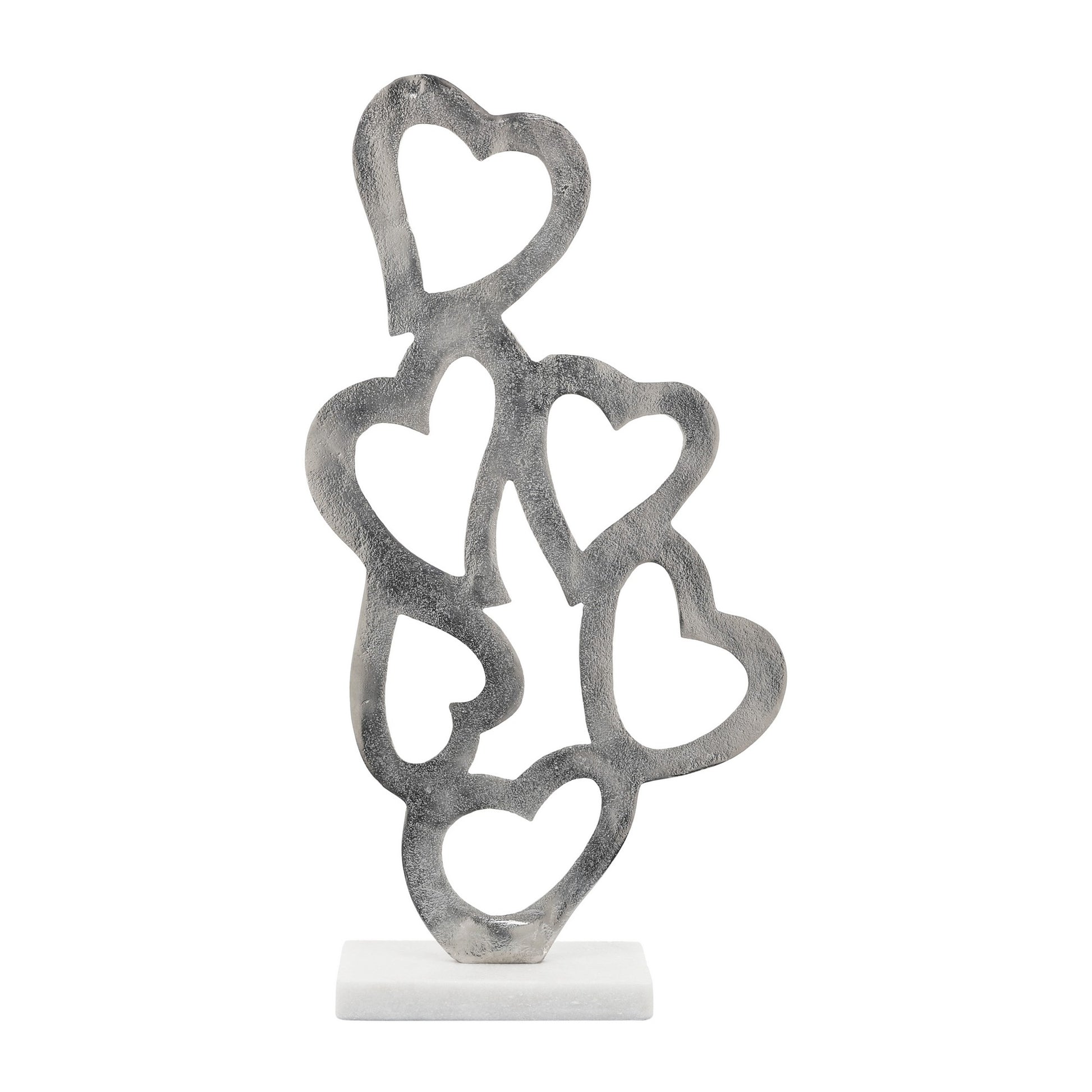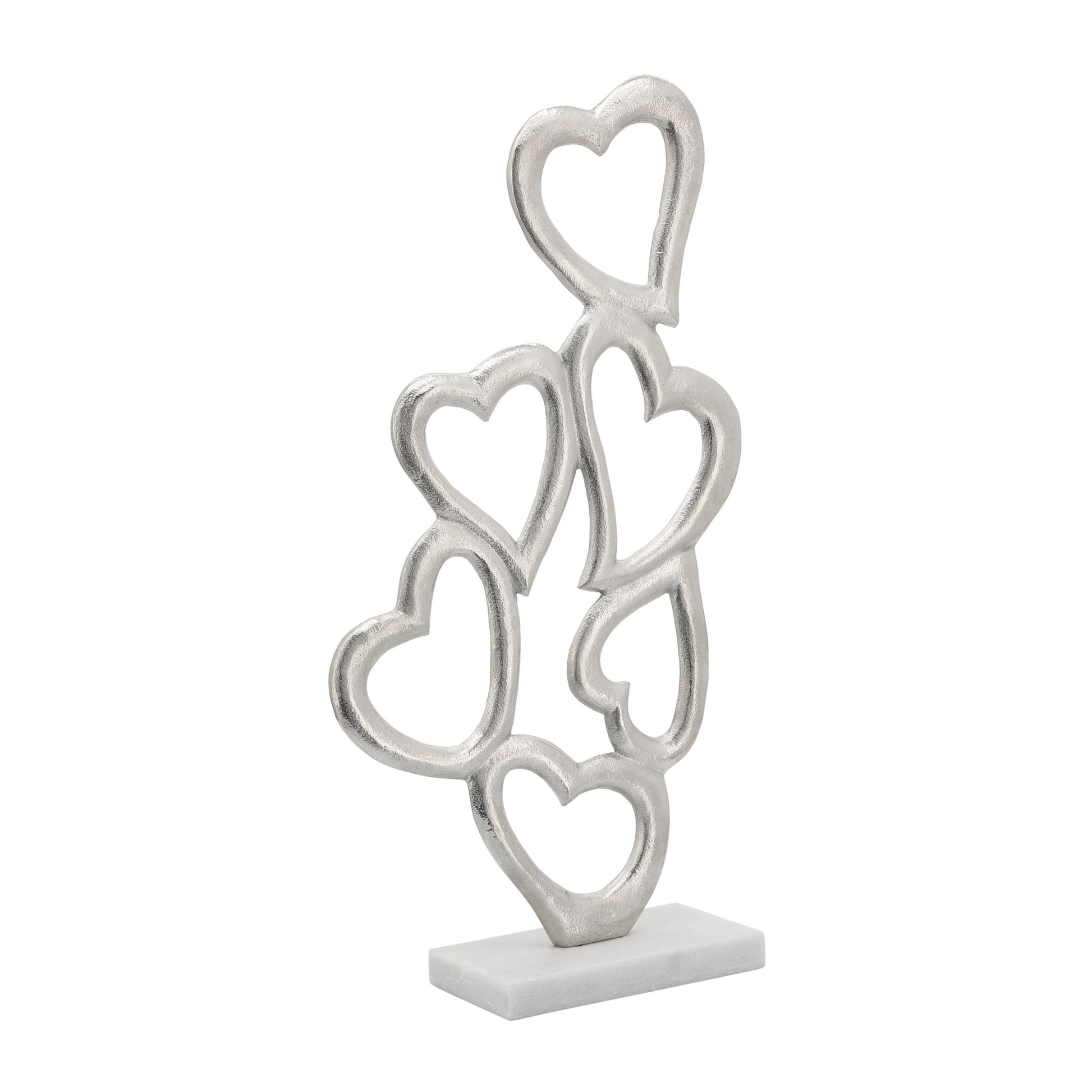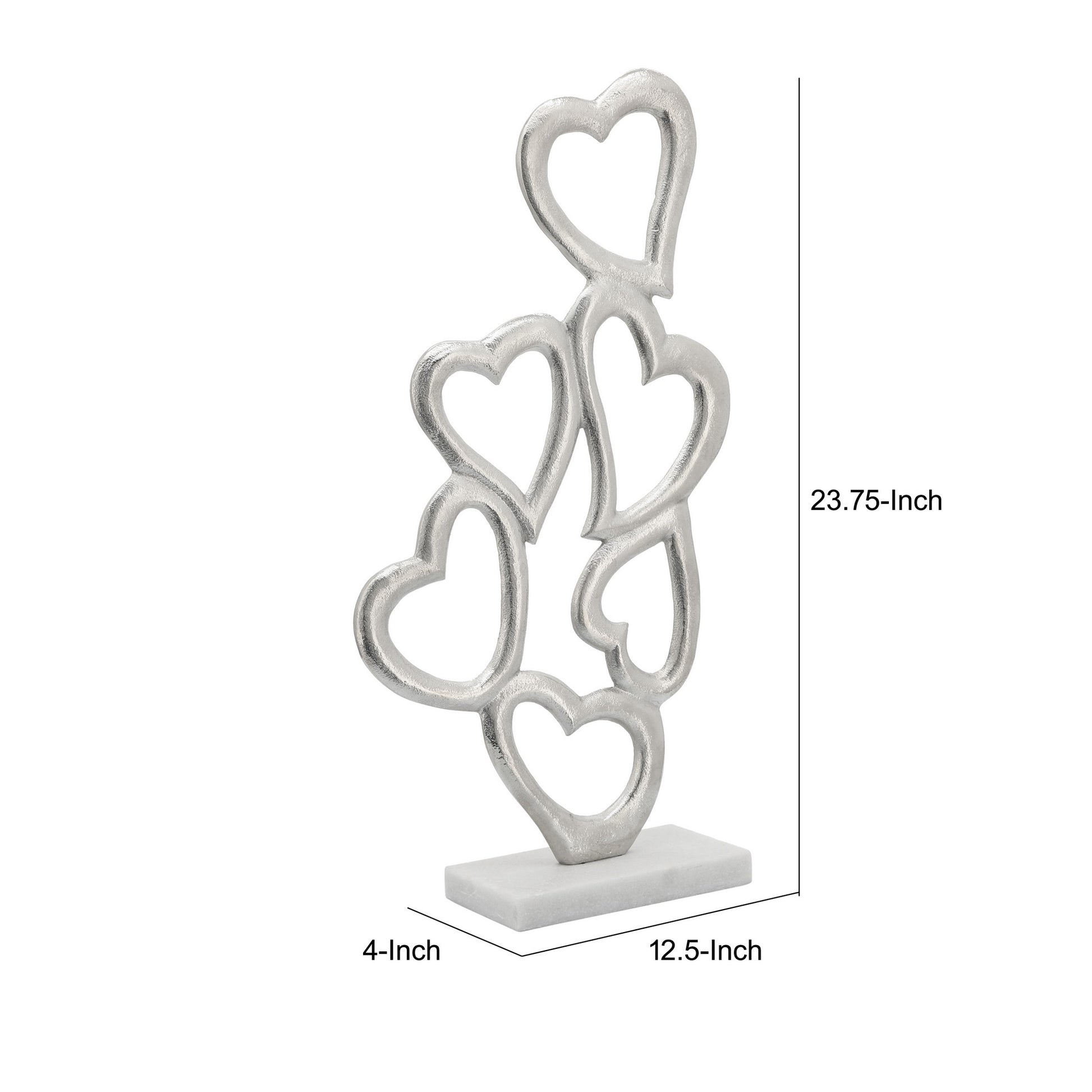 24 Inch Metal Table Decor Multiple Heart Design Marble Base Silver