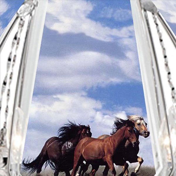 24 Inch Metal Table Lamp Umbrella Glass Shade Running Horses Touch Light Silver