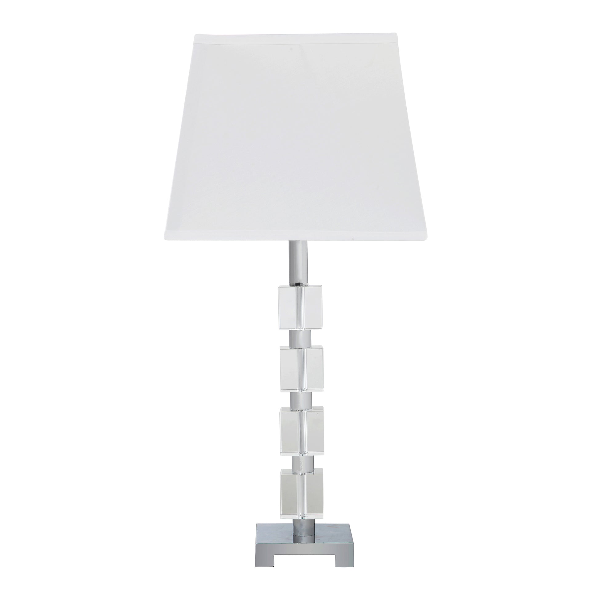 Update any space instantly by adding this glam 4 crystal cubic ice table lamp. The cube ice profile adds lovely detail, also serving as the base for a sphere detail. This Wendi Glam Crystal table lamp creates a standout lighting effect in your foyer, which features a column of clear crystal blocks as a focal point base. With a cubic ice column profile and crystal glass design, this contemporary table lamp has a stunning and lavish quality. This Glam Crystal table lamp casts a warm and welcoming glow as the rectangular white cotton/linen shade softly diffuses the light from the single bulb.