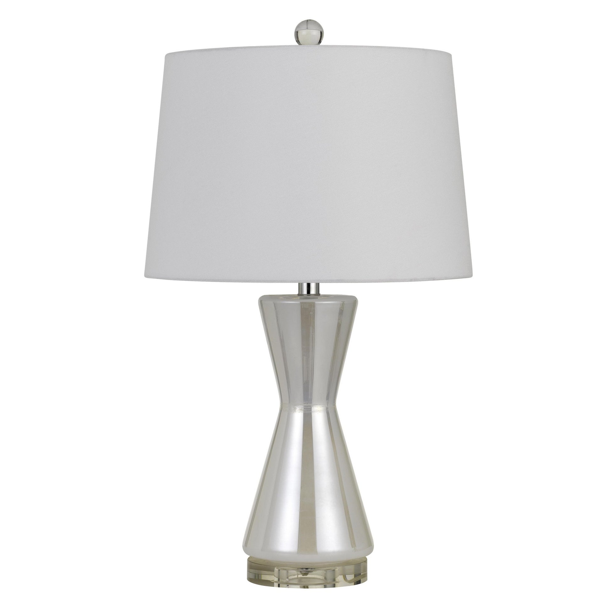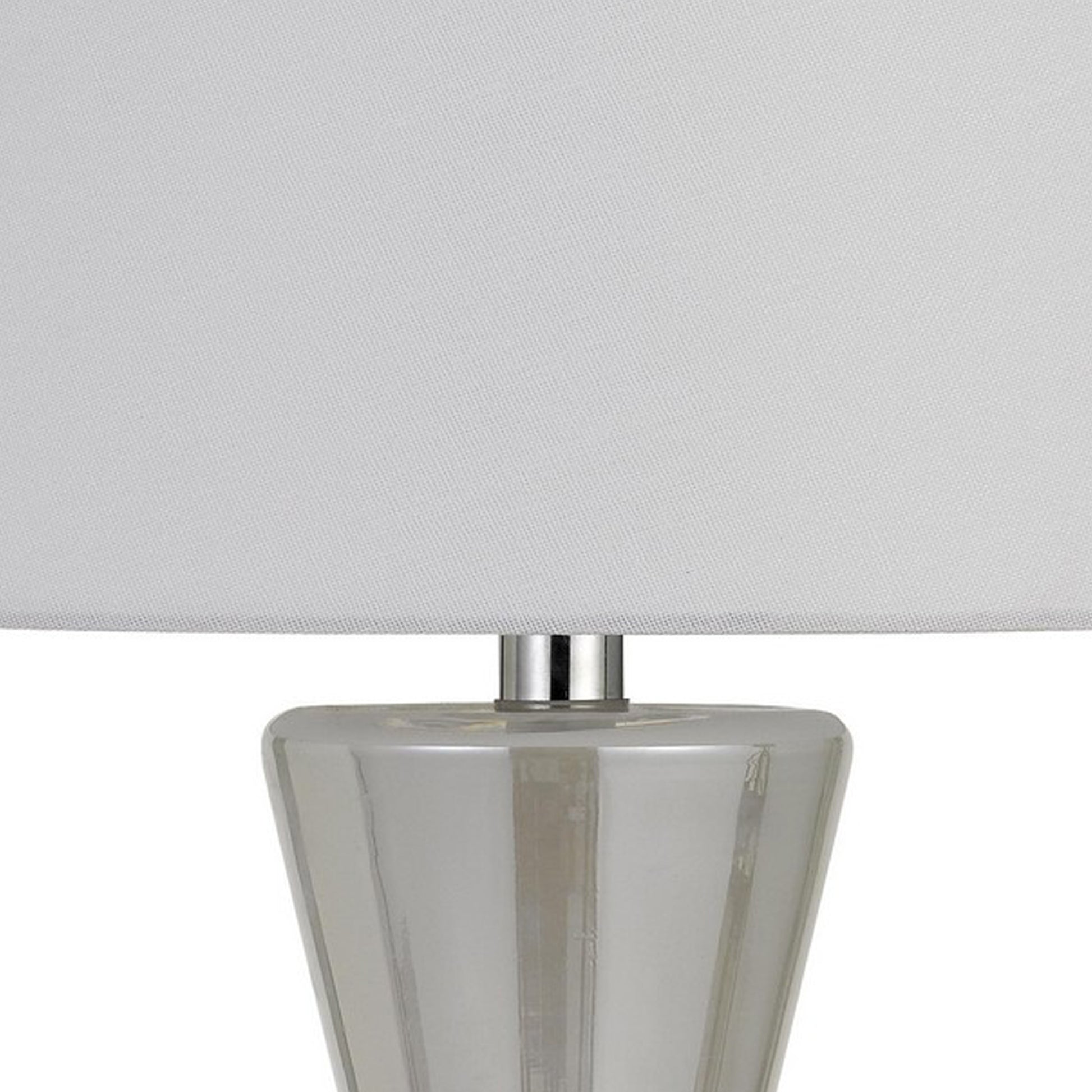 Glorify your living space with the inclusion of this contemporary style 26 inch Table Lamp. Incorporating a streamlied shape glass layered base in silver color and a fabric white color shade. With its appealing aesthetics, it is sure to elevate your decor setting.