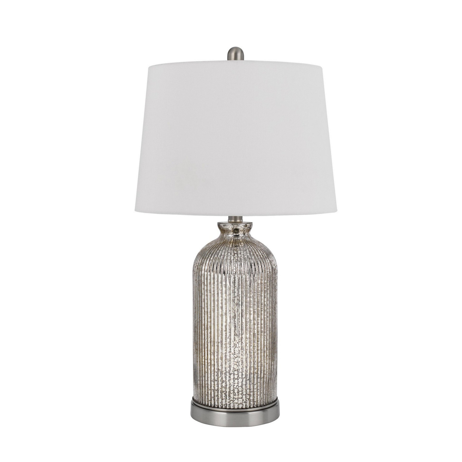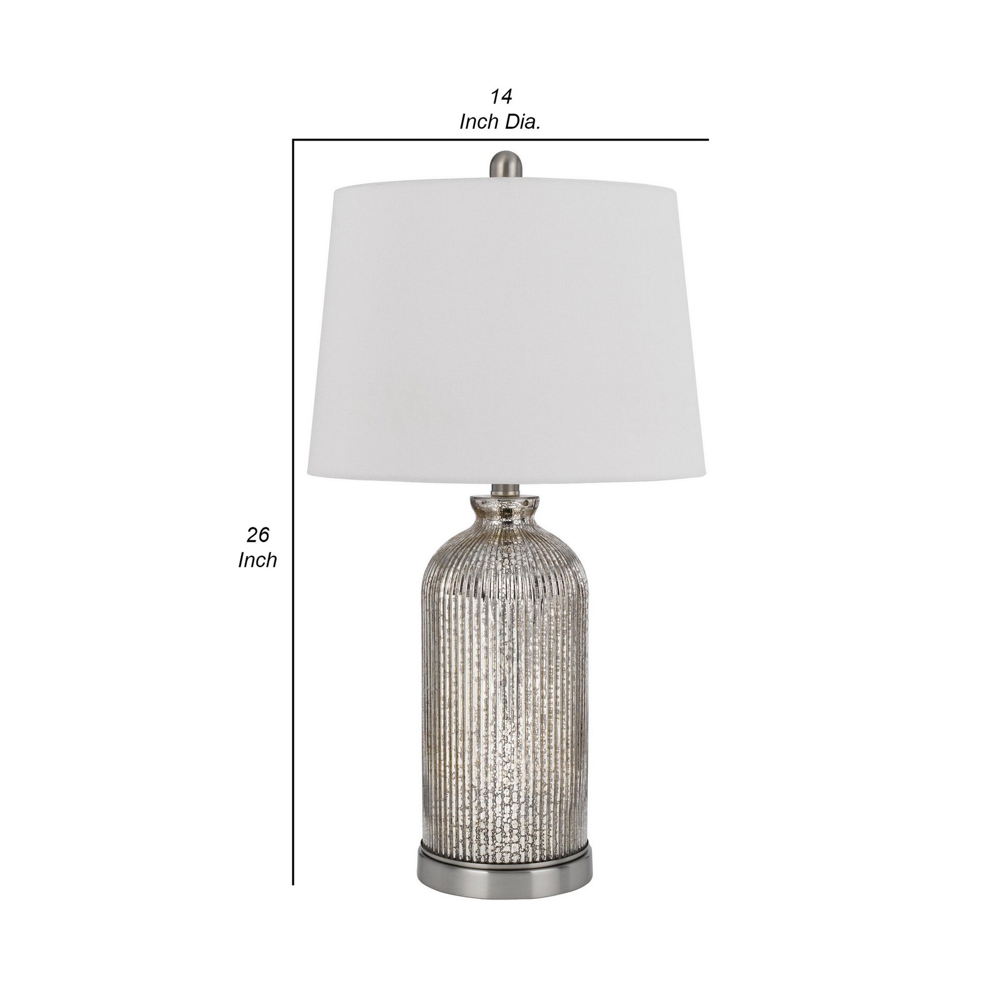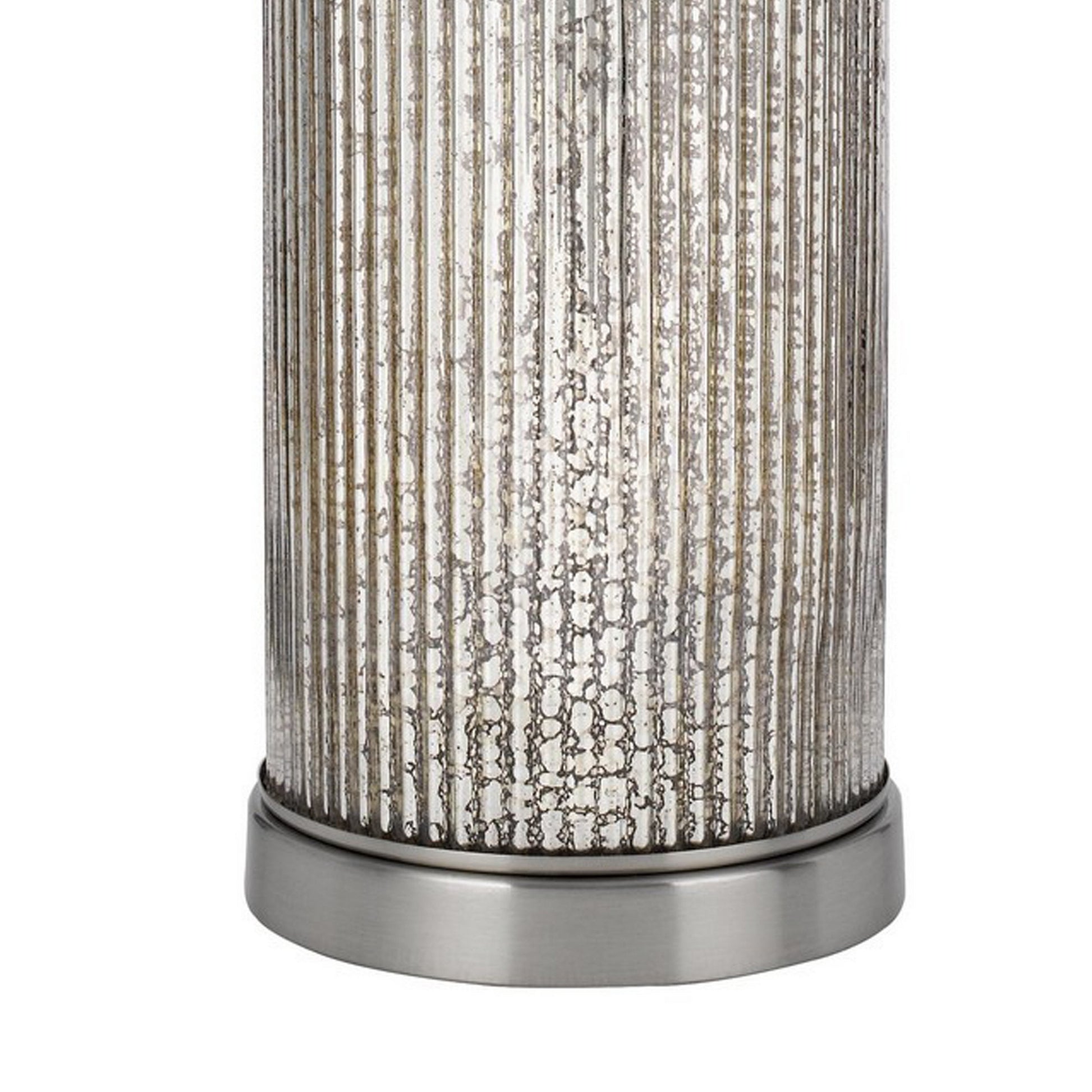 26 Inch Accent Table Lamp Set of 2 Lined Glass Jar Base Metallic Silver
