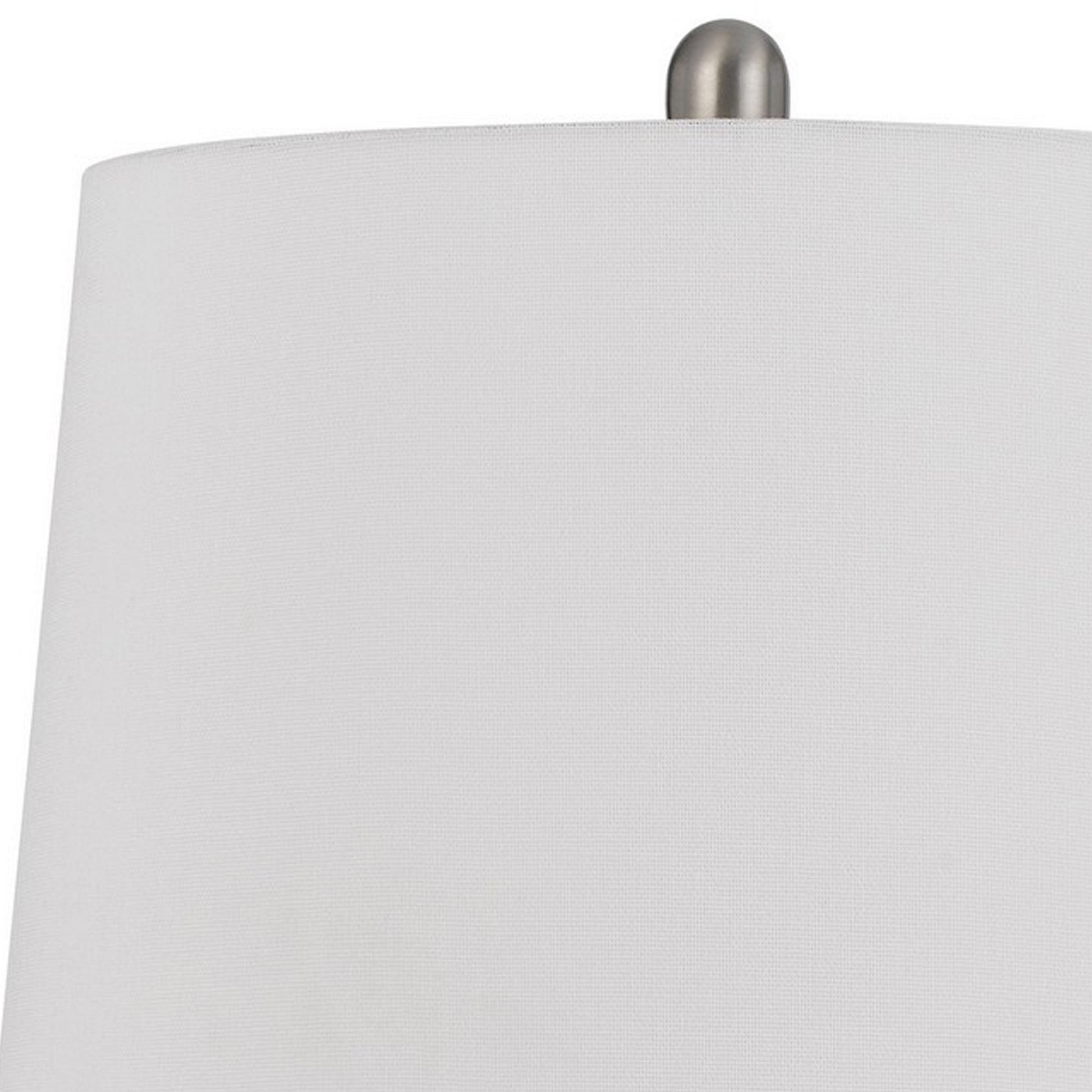 Crafted with contemporary style in mind, this accent table lamp in a set of two is here to brighten up your living room, bedroom, hall, or office with its soft and pleasant light. The glass jar encases a beautiful crackled design complimented in a metallic silver finish. Resting atop it is the bright white hardback fabric shade that softly diffuses the light and fills the room with a calm hue. Includes a three way dimmer switch.