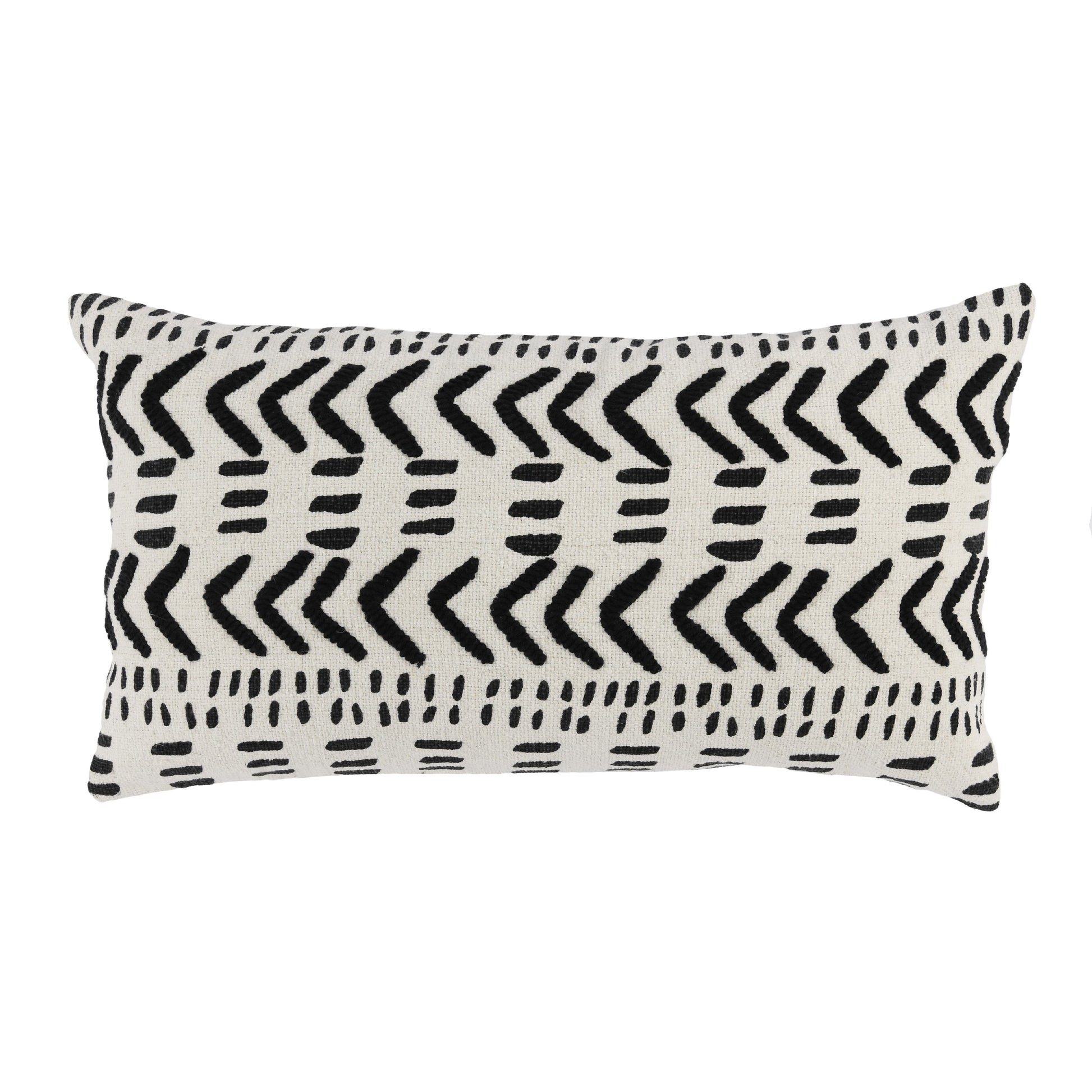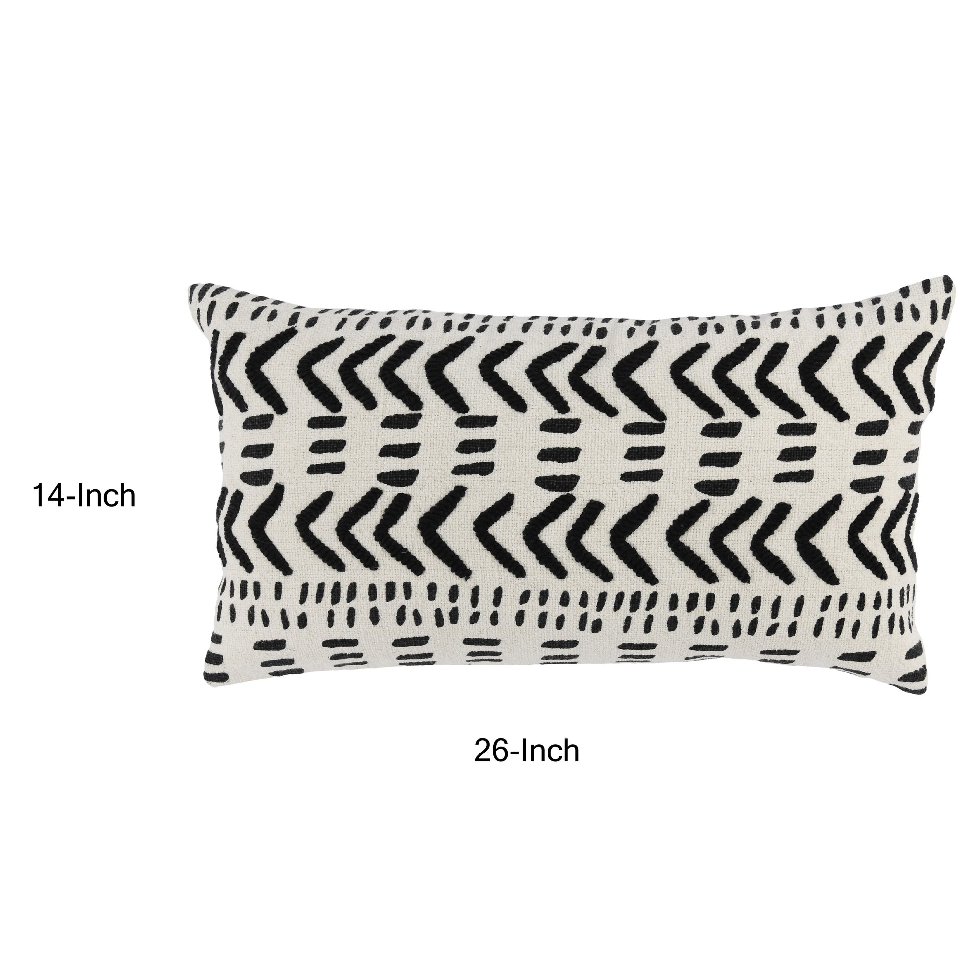 26 Inch Cotton Decorative Lumbar Throw Pillow Tribal Pattern Black White