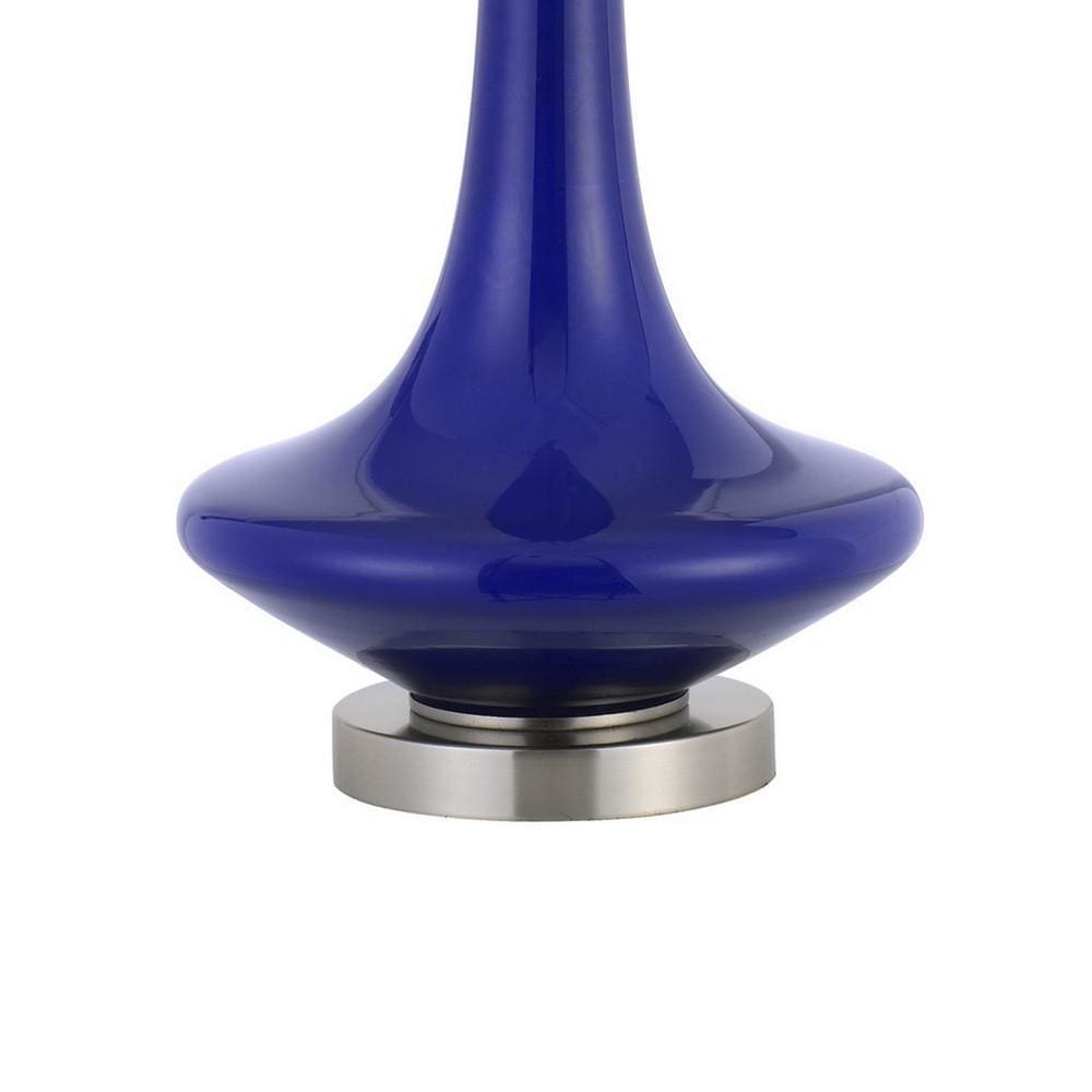 26 Inch Curved Bellied Base Glass Table Lamp Fabric Shade Set of 2 Blue