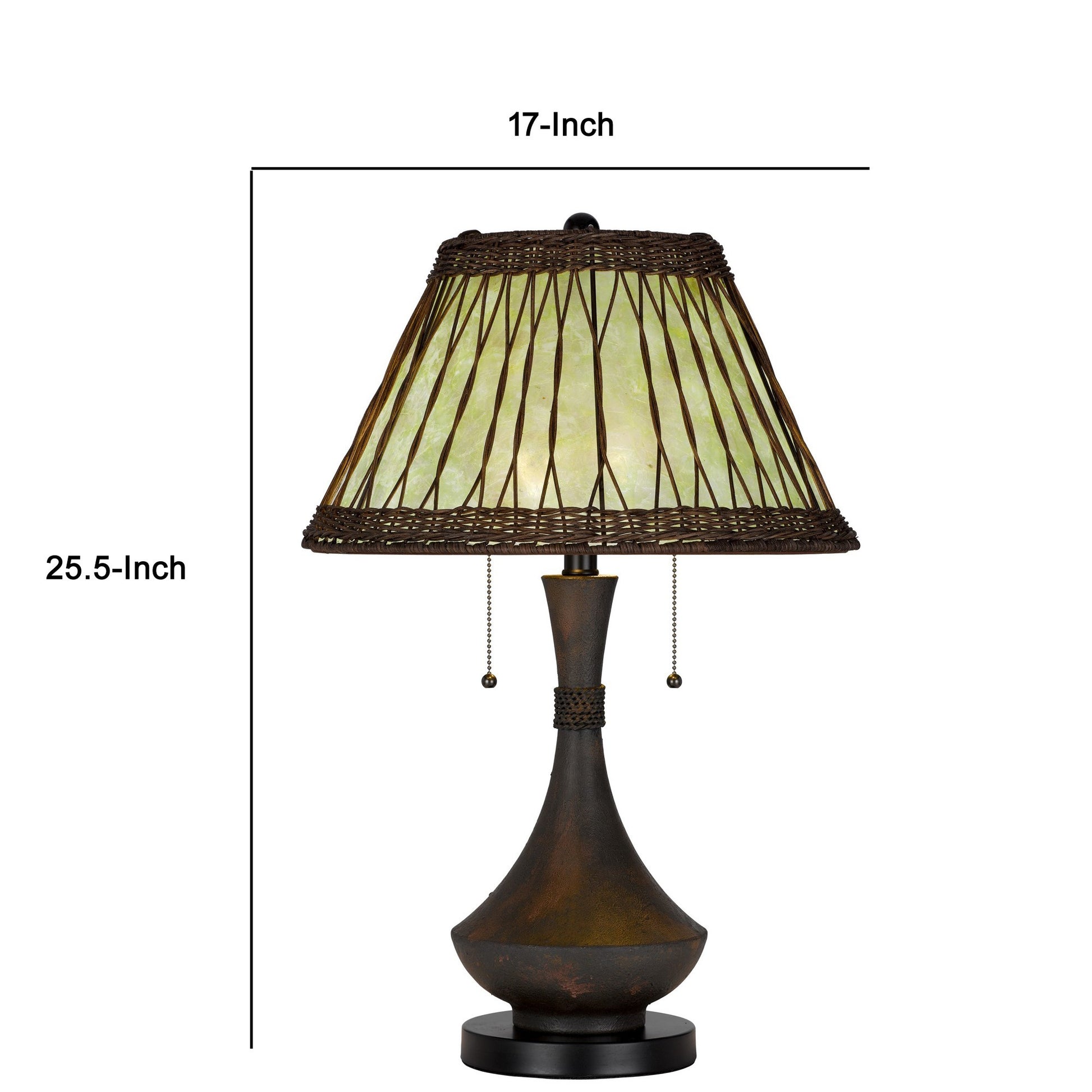 26 Inch Table Lamp Bamboo Woven Stained Green Shade Wicker Trim Bronze