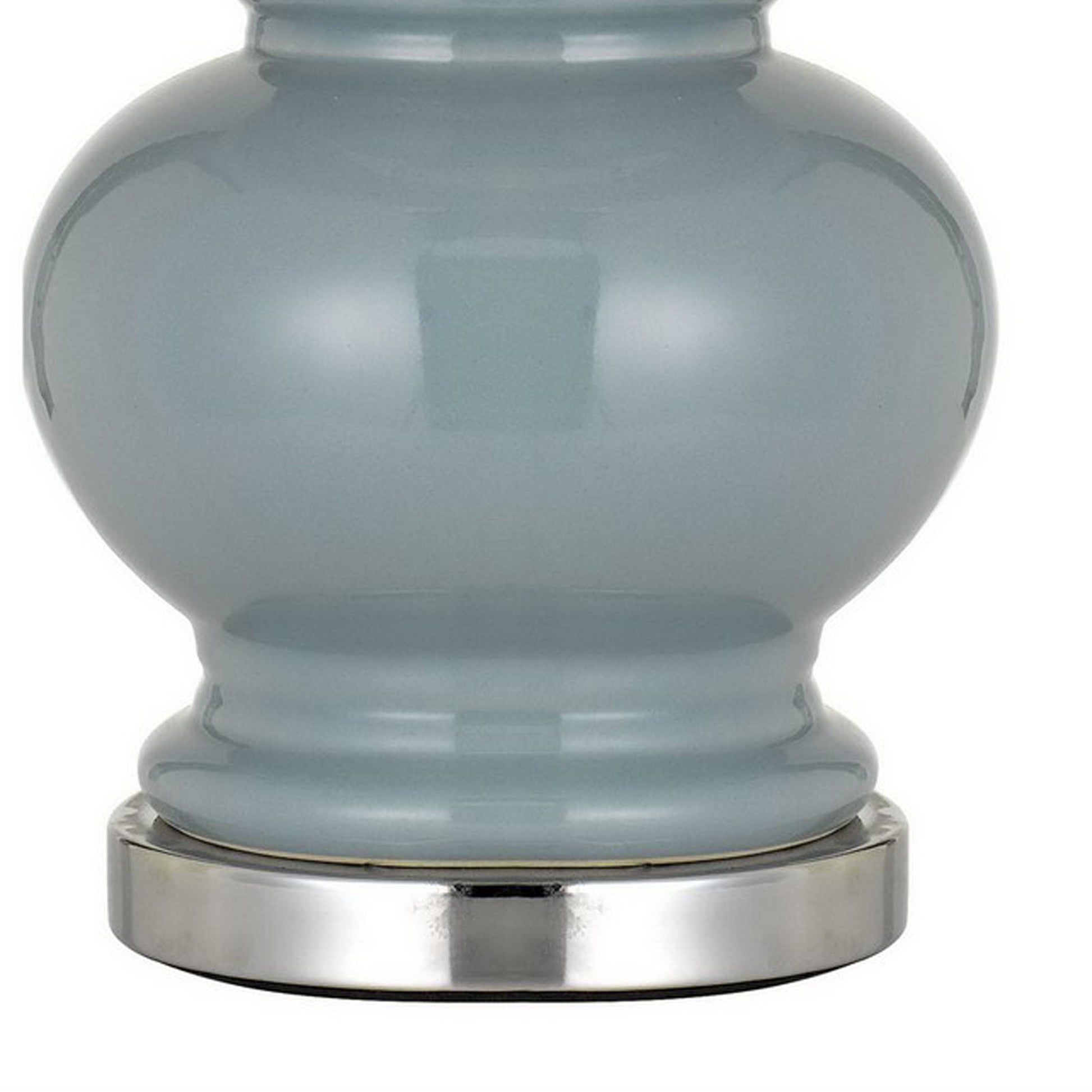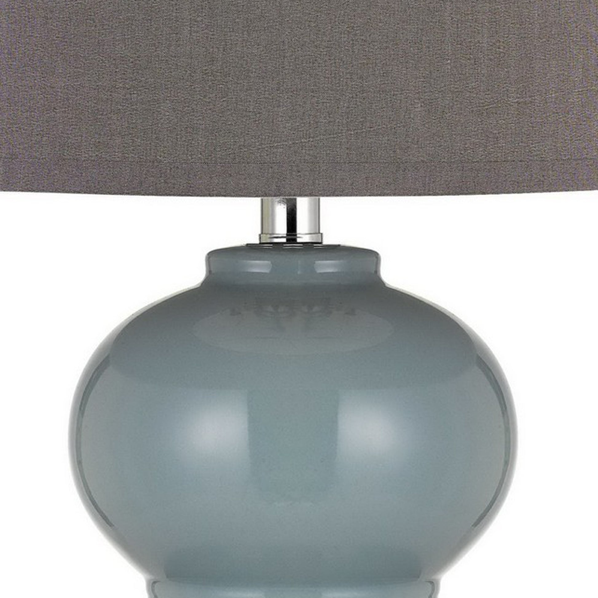 Illuminate your home with the lights of prosperity by bringing in this captivating 27 inch table lamp. Featuring a ceramic body in a slate blue color finish, it is incorporated with a round gray fabric shade that uses 150W type A bulb for providing proper lighting.