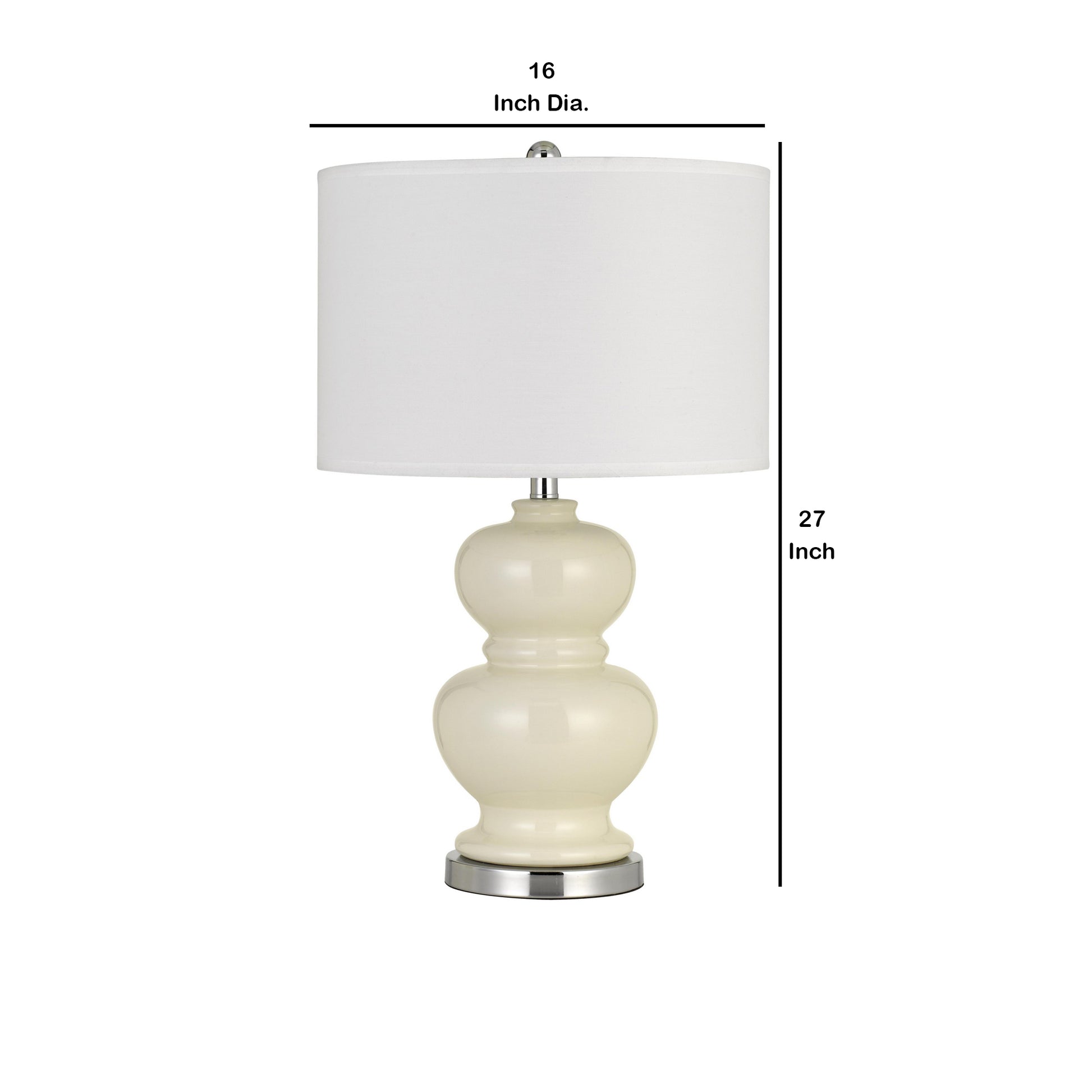Illuminate your home with the lights of prosperity by bringing in this captivating 27 inch table lamp. Featuring a ceramic body in a white color finish, it is incorporated with a round fabric shade that uses 150W type A bulb for providing proper lighting.