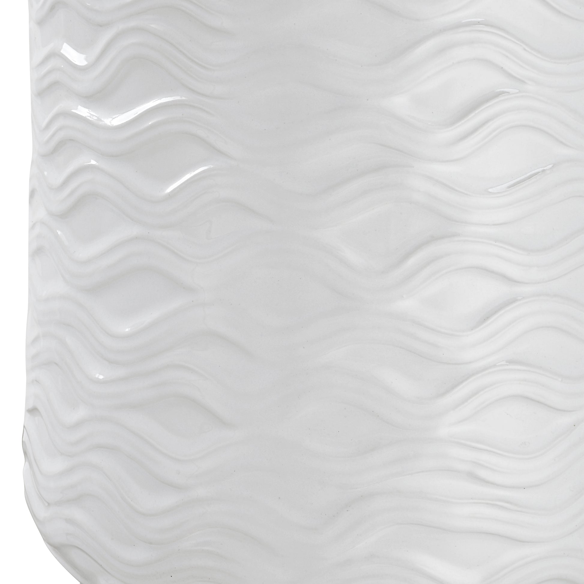 27 Inch Ceramic Table Lamp Wavy Texture Silver White