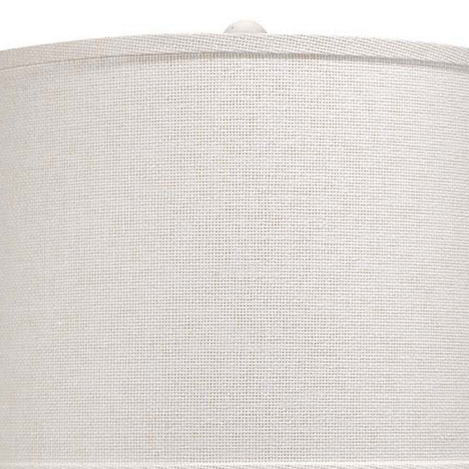 Brimming with style, elegance, and deep sophistication, this table lamp is done in a crisp white finish with a grass cloth shade to bring an air of luxury to your bedroom, workspace, study, or living room. A 3 way dimmer switch allows you to control the light intensity to your preference and convenience. 100W bulb required to achieve intended lighting effect.