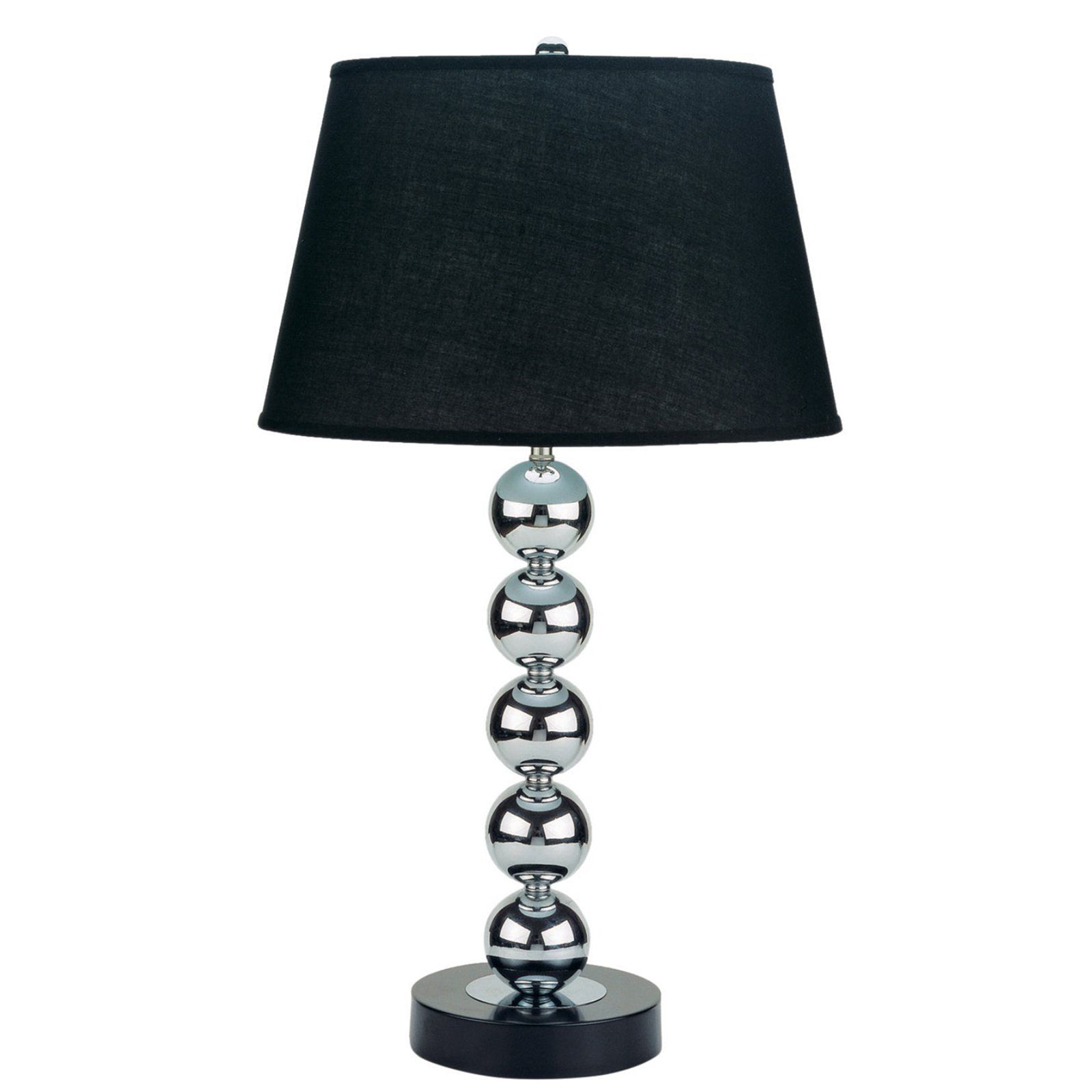Stylize your transitional space with the tasteful appeal of this Set of 2 Table Lamp. Featuring a black finished drum shade, ball finial on top and black finished round base with silver stacked orbs, these lamps are sure to create a warm and inviting shimmer when illuminated.