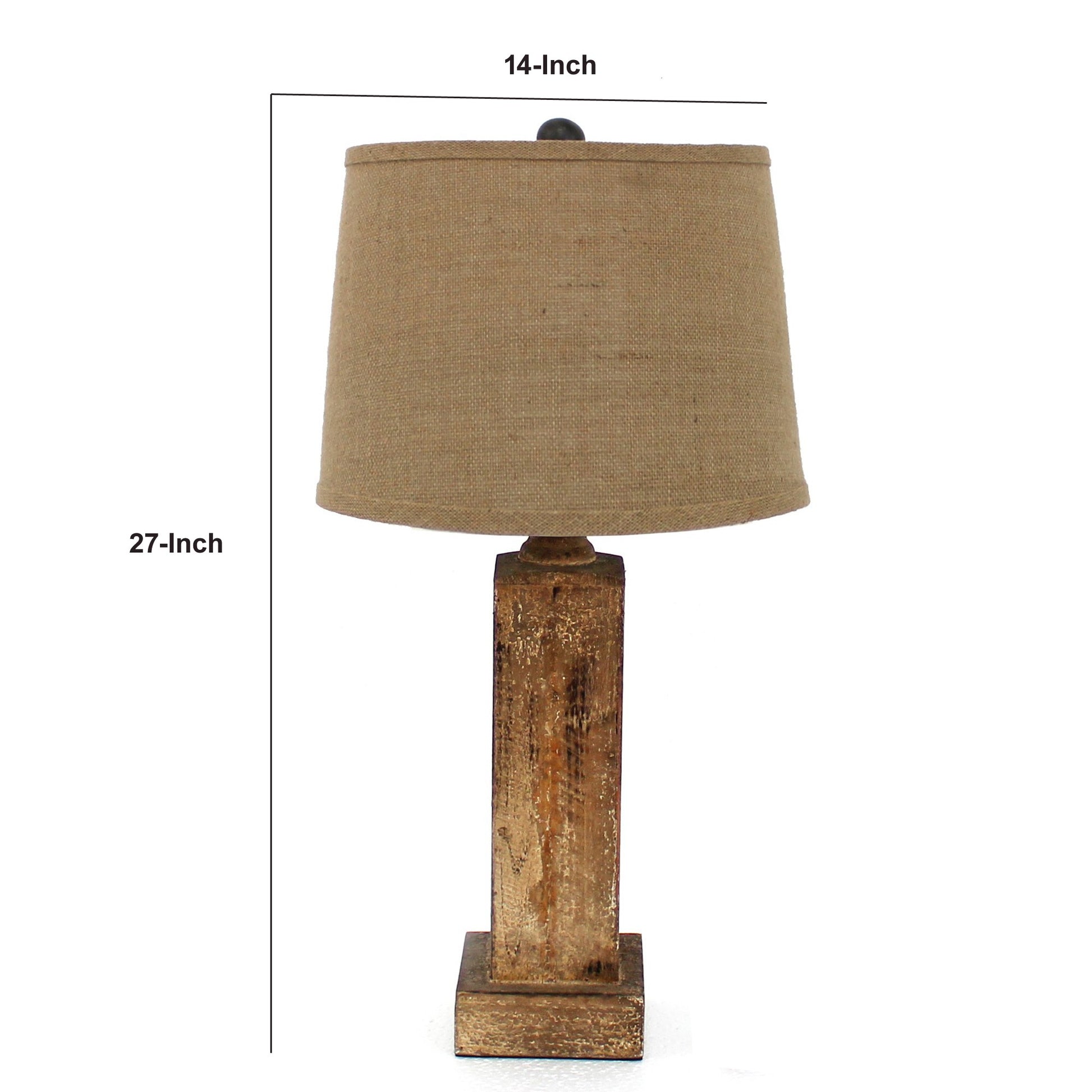 A perfect way to add visibility and a warm, welcoming glow to any room in your home, this gorgeous and rustic wood table lamp is a beautiful accent that is ideal for any living room, kitchen, or bedroom. Equipped with a dark rounded linen shade that filters light beautifully, the base is done with a distressed wood appearance that blends beautifully with any interior decor.